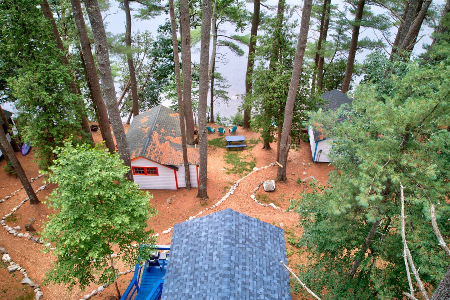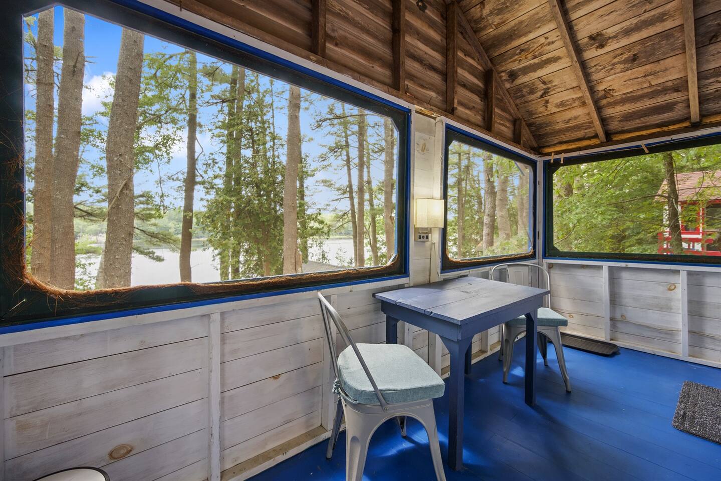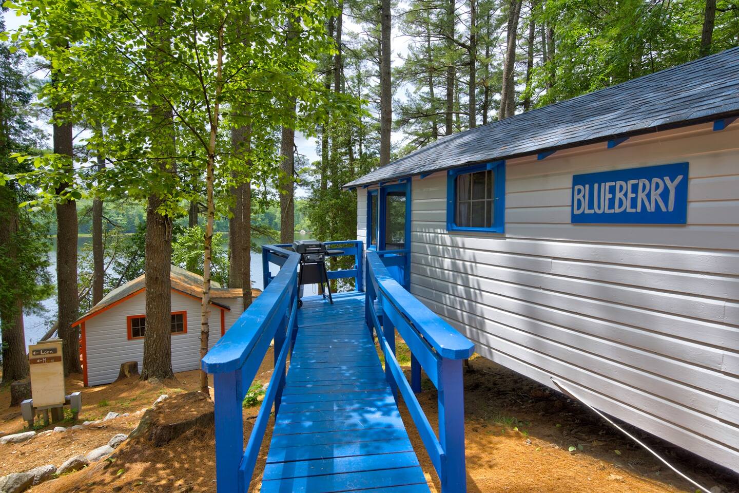 This newly remodeled Maine & Blueberry themed tiny cabin is nestled among the tall pine tree shoreline of Toddy Pond. The cabin is located in the back row of cabins, as seen on the map in the listing images. You will love this Blueberry themed tiny cabin! Tucked away in a 9-cabin resort on the beautiful gravel shores of Toddy Pond, you’ll have the opportunity to swim and kayak in the crystal-clear water, relax at the shady picnic tables beneath the towering pine trees, view local wildlife, enjoy at-home necessities, and easily access nearby towns! This is truly a special and unforgettable place! Bring your pets, we are very pet-friendly. You can escape the heat and cold in the cabin with the brand new central air conditioning and heating units. This tiny cabin is 14x14ft wide and has one main room, a bathroom, a screened-in porch, and a yard. There is a King-size bed, a kitchenette, and a small dining area with two chairs. There is an attached and fully remodeled bathroom. The bathroom is small but equipped! Brand-new stand-up shower, toilet, and vanity. Out the front door is a marvelous screened porch with another dining table. Outside is a 6 ft picnic table, a fire pit, a gas grill, and plenty of Adirondack chairs for your group. LINENS: We provide sheets, quilts, pillows, towels, hand towels, face towels, and beach towels CONSUMABLES: We provide salt, pepper, oil, paper towels, toilet paper, dish soap, and hand soap. We ask that people bring their own personal hygiene products to their preferences (shampoo, conditioner, body soap, toothpaste, etc) SLEEPING ACCOMMODATIONS: 1 King Bed, 1 pack and play available KITCHEN: Fully equipped, electric cooktop and oven, mini fridge, microwave, toaster, drip coffee maker, cooking basics, dishware, utensils INDOOR LIVING: Furnished bed areas, a small dining area consisting of a wooden table and two chairs PORCH: Dining table with two chairs OUTDOOR LIVING: Direct lake access via steep path and staircase to the water, private & expansive yard, fire pit for outdoor campfires (bring your own firewood), a gas grill, 6ft picnic table, Adirondack chairs, beautiful towering pine trees, abundant open space, ample sun and shade GENERAL: High-speed WiFi, new heat-pump A/C and heat unit, hot shower, keyless keypad entry, linens, towels PARKING: There is a large, shared gravel driveway. One vehicle is permitted for the Blueberry cabin. Parking is not directly next to the cabin. There is a spot to park and unload 50 feet from the cabin. From there, vehicles are moved to the parking lot, which is about 100 feet away. It is a steep hill down to the cabin from the unloading spot ACCESSIBILITY: The resort is not the most accessible place for anyone with mobility challenges. There are no stairs to access the building from the path or inside the building. However, parking is ~100 feet from the cabin entrance with a downhill slope from the driveway to the cabin door. This is one of the more accessible cabins, but does still require a walk downhill to get to the entrance ramp. PETS: We are pet-friendly! We have simple pet rules: clean up after your pet (inside and outside the cabin), keep your pet leashed while outside at all times to avoid any issues with other pets, and do not leave pets alone in the cabins