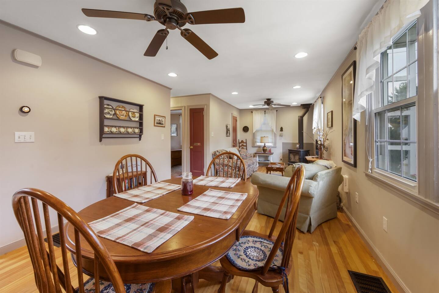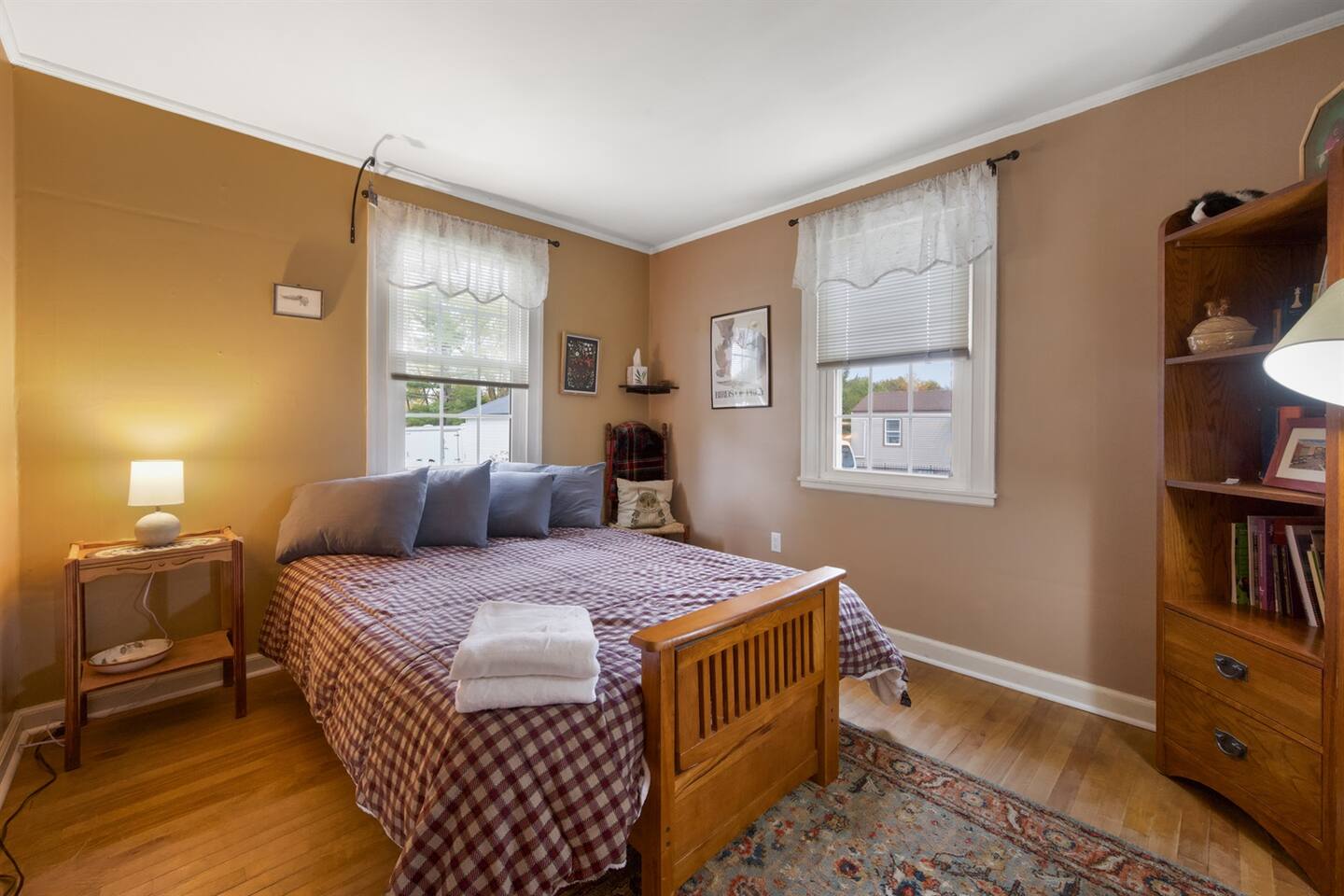 Welcome to your cozy Bangor retreat, a 3-bedroom home thoughtfully designed with a Maine wildlife theme inspired by the local woods, birds, and wild blueberries. This inviting space blends natural elements with modern comforts, creating a relaxing getaway just minutes from everything Bangor has to offer. Set in a quiet neighborhood with a spacious yard, the home is only 10 minutes from Bangor International Airport, and even closer to the Maine Savings Amphitheater, where the Bangor Waterfront Concert Series brings major artists and summer energy to the banks of the Penobscot River. Whether you're here for music, nature, or just to unwind, the location is hard to beat. The house comfortably sleeps five and features three cozy bedrooms, one full bath, and a fully equipped kitchen. Inside, you'll find warm lighting, nature-inspired decor, and a peaceful vibe that makes you feel instantly at home. The living room includes a Smart TV, and there's reliable Wi-Fi throughout. Outside, enjoy a tree-lined backyard perfect for relaxing or letting pets and kids play. The patio is a great spot for morning coffee or evening chats, and the fire pit sets the scene for s’mores and starry nights. You'll also have laundry facilities, window A/C units, and easy parking. Pet-friendly and welcoming to all, this nature-inspired home is perfect whether you're exploring the coast, catching a show, or simply soaking in the peaceful Maine surroundings. LINENS: We provide sheets, quilts, pillows, towels, hand towels, and face towels CONSUMABLES: We provide salt, pepper, oil, paper towels, toilet paper, dish soap, and hand soap. We provide personal hygiene products to start with but feel free to bring your favorite items. SLEEPING ACCOMMODATIONS: 1st Floor: Wildlife theme room with queen-sized bed 2nd Floor: Forest themeroom with a Full-sized bed 2nd Floor: Blueberry theme room with queen-sized bed 1st floor bathroom: 1 full bath with shower/tub combo, shelves, towels, mirror, and complimentary shampoo, conditioner, and body wash. KITCHEN: The kitchen features a cozy Maine natural food theme with red walls, artwork of farmers, slate boards, a Maine-shaped cutting board, antique vegetable posters, and loon-themed towels. It’s fully stocked with essentials like a stove, oven, refrigerator with ice and water dispenser, microwave, toaster oven, double sink with disposal, electric kettle, blender, griddle, waffle maker, bakeware, utensils, pans, lobster forks, and fiestaware dishes. OTUDOOR LIVING: access to spacious fenced backyard with fire pit and garden chairs. GENERAL: High-speed WiFi, a Smart TV, and the home is equipped with a hot air furnace, window A/C units, and laundry facilities in the basement for your convenience. PARKING: There is a large driveway where up to 3 cars can fit. ACCESSIBILITY: Wildlife-themed room with a king-sized bed, accessible for most guests with only three steps at the front entrance. This floor also includes the vintage-decorated living room, a cozy kitchen, and direct access to the backyard patio. PETS: We are pet-friendly! We have simple pet rules: clean up after your pet (inside and outside the house), keep your pet leashed while outside at all times to avoid any issues with other pets, and do not leave pets unattended.