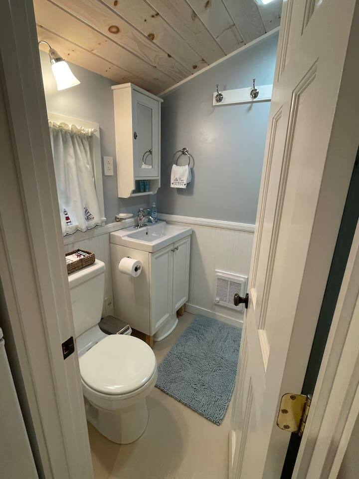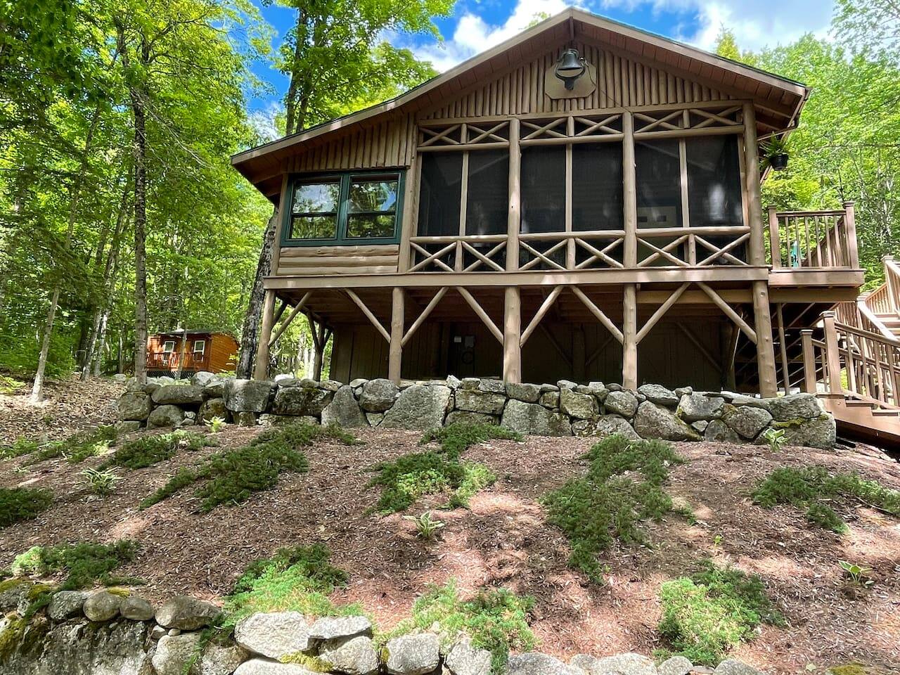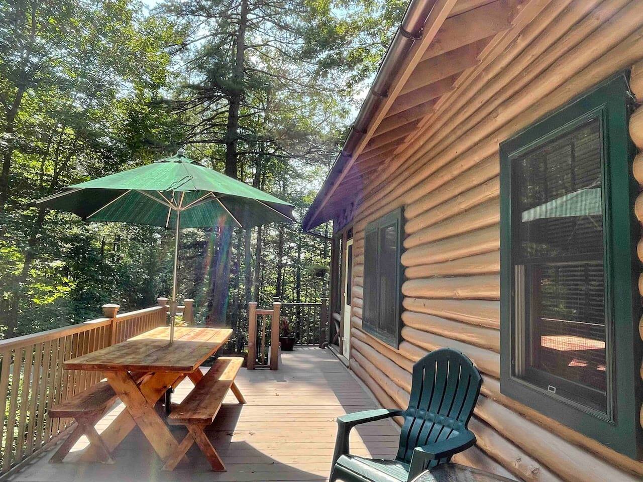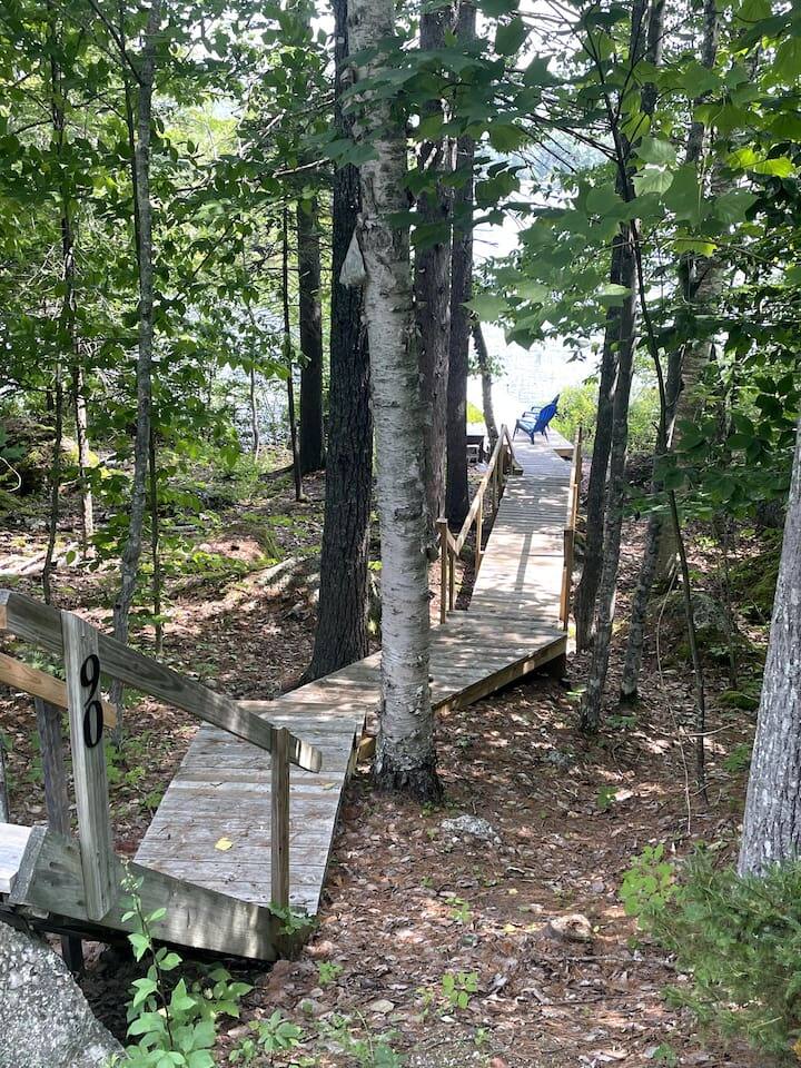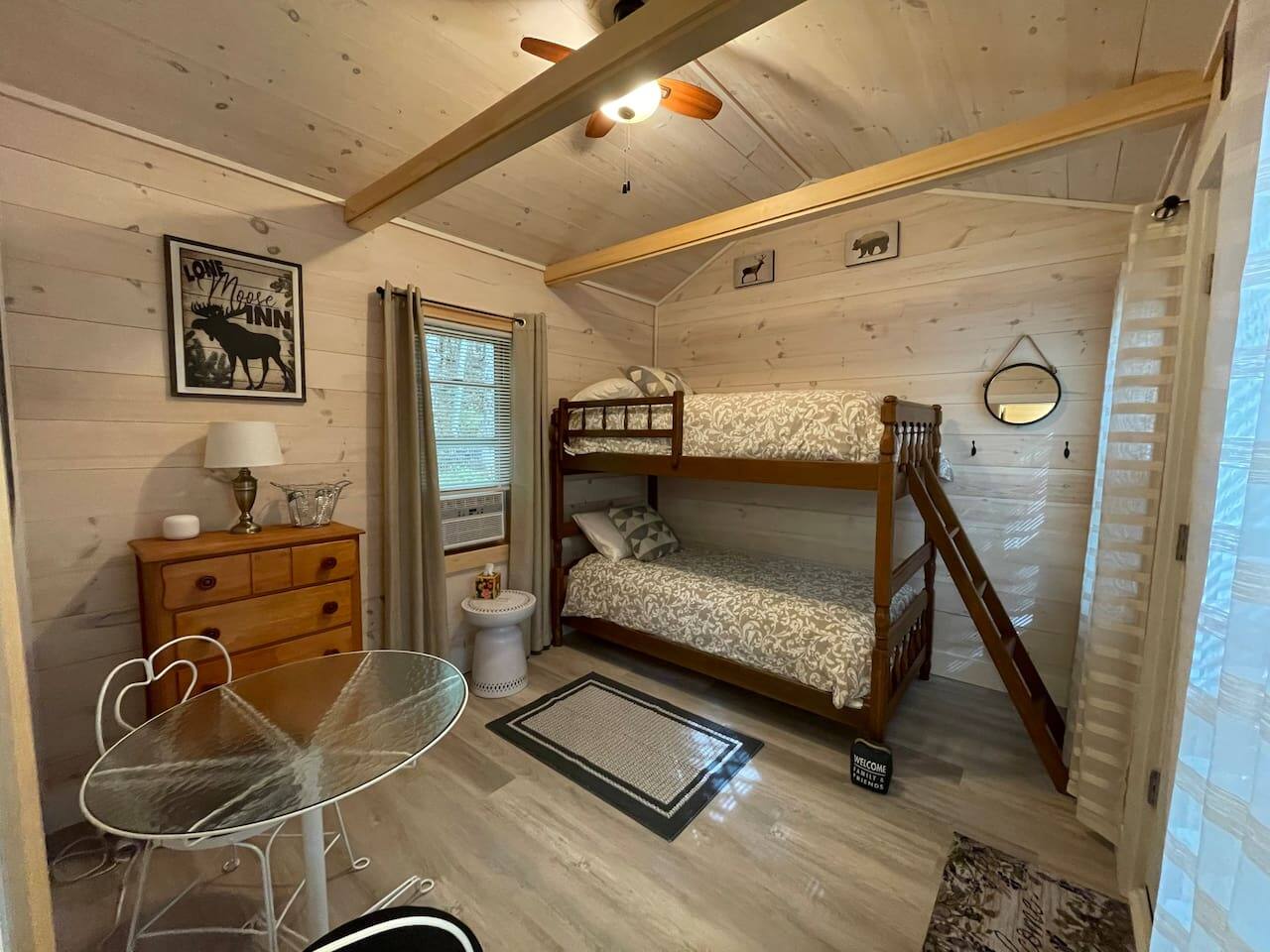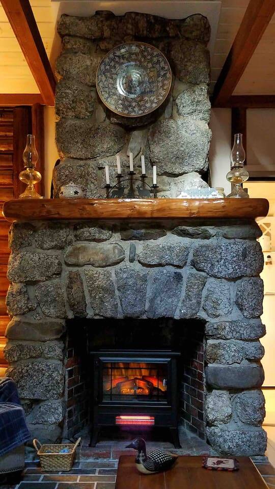 Entire place is yours. You will have everything you need for your vacation stay. The main cabin has one bedroom with a Queen size bed and one bathroom. The kitchen is equipped for cooking and dining, including oven, K cup coffeemaker, drip coffeemaker, microwave, waffle maker, blender, various pots, pans, dishes and other amenities. Complimentary basket of k cups, sugar, creamers, bottled water and an assortment of snacks included. Amenities for bathroom include towels, soap, shampoo, conditioner and hair dryer. Relax in natural surroundings by the electric fireplace on cooler evenings or sit on the screen porch enjoying your morning coffee. You may even hear the sound of loons on the lake. The detached guest cabin has bunk beds. A half bathroom is ensuite. A very private space yet just a few steps to all the features of the main cabin. This could be a a great place for your friends or kids to enjoy camp life! Toast marshmallows at the fire pit. Take a local hike on nearby trails or walk the camp roads. Take a quick drive to a private cove for kayaking and swimming. This Maine getaway property is the perfect location to relax after a day of sightseeing.