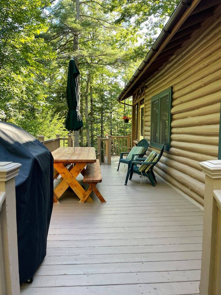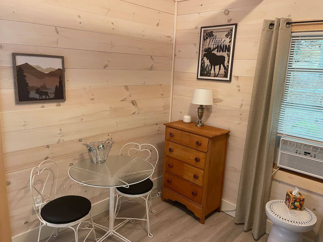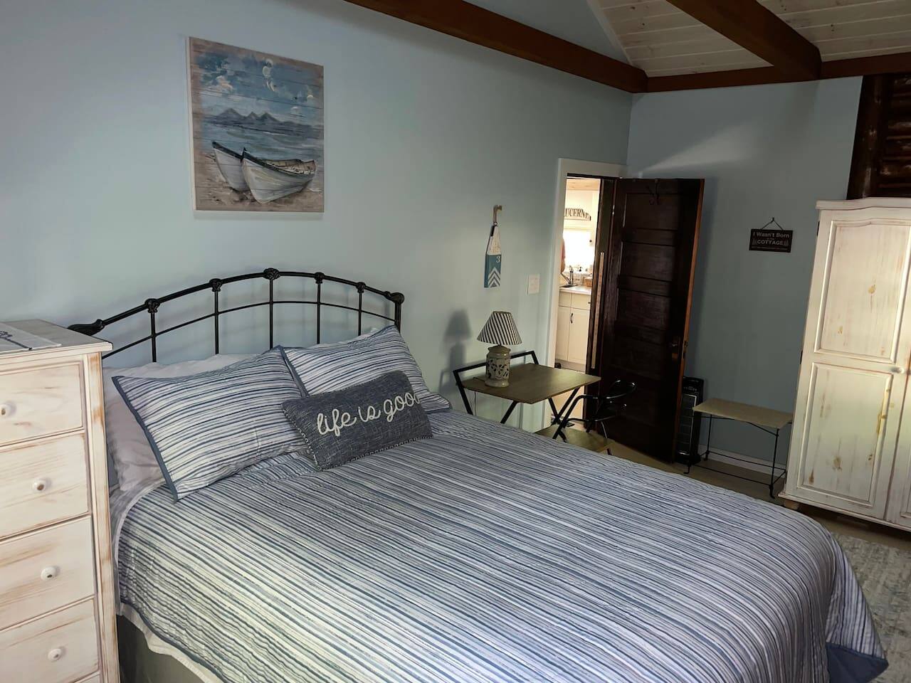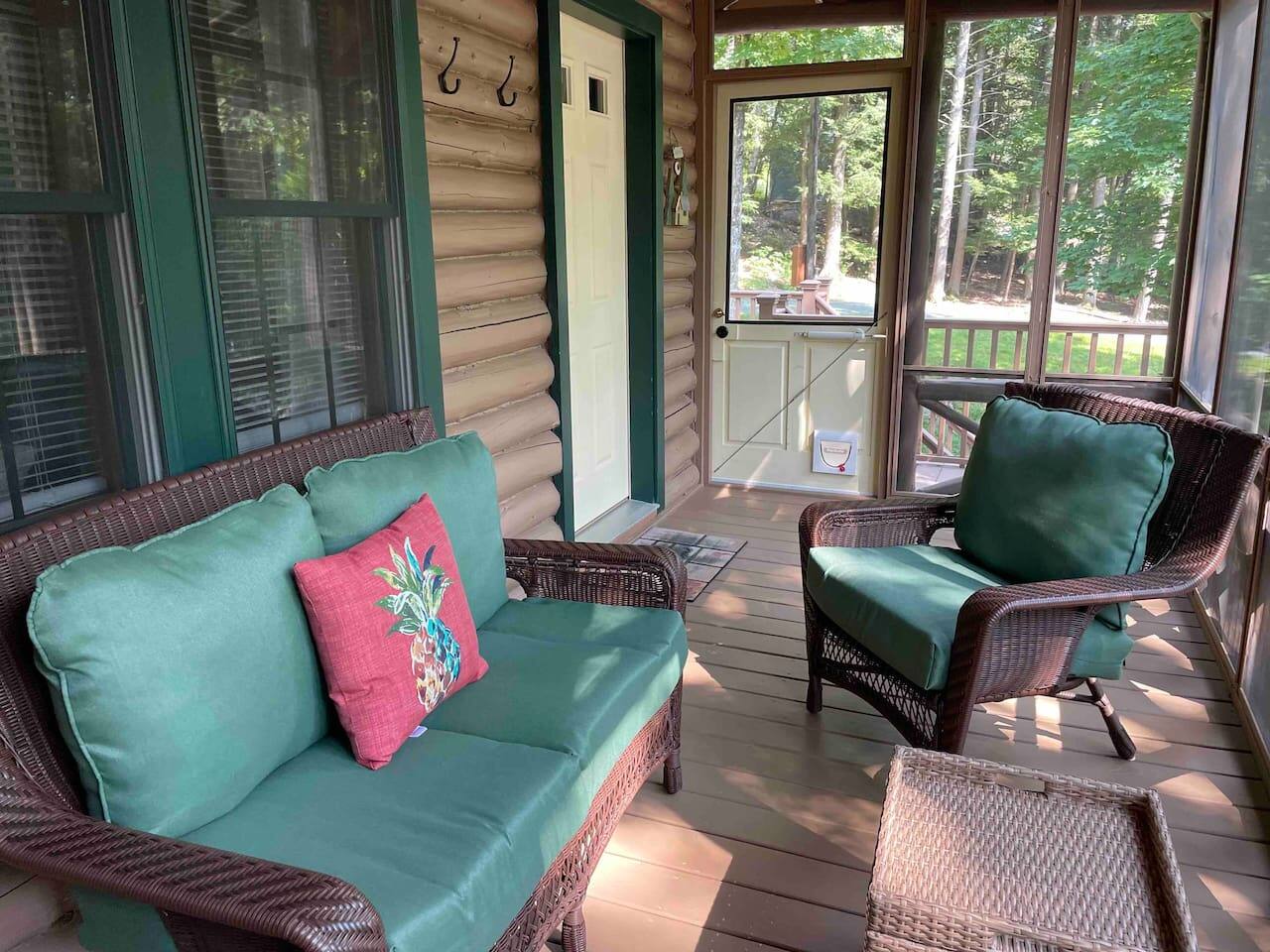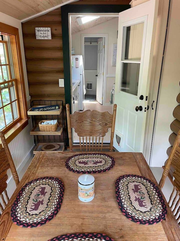 Entire place is yours. You will have everything you need for your vacation stay. The main cabin has one bedroom with a Queen size bed and one bathroom. The kitchen is equipped for cooking and dining, including oven, K cup coffeemaker, drip coffeemaker, microwave, waffle maker, blender, various pots, pans, dishes and other amenities. Complimentary basket of k cups, sugar, creamers, bottled water and an assortment of snacks included. Amenities for bathroom include towels, soap, shampoo, conditioner and hair dryer. Relax in natural surroundings by the electric fireplace on cooler evenings or sit on the screen porch enjoying your morning coffee. You may even hear the sound of loons on the lake. The detached guest cabin has bunk beds. A half bathroom is ensuite. A very private space yet just a few steps to all the features of the main cabin. This could be a a great place for your friends or kids to enjoy camp life! Toast marshmallows at the fire pit. Take a local hike on nearby trails or walk the camp roads. Take a quick drive to a private cove for kayaking and swimming. This Maine getaway property is the perfect location to relax after a day of sightseeing.