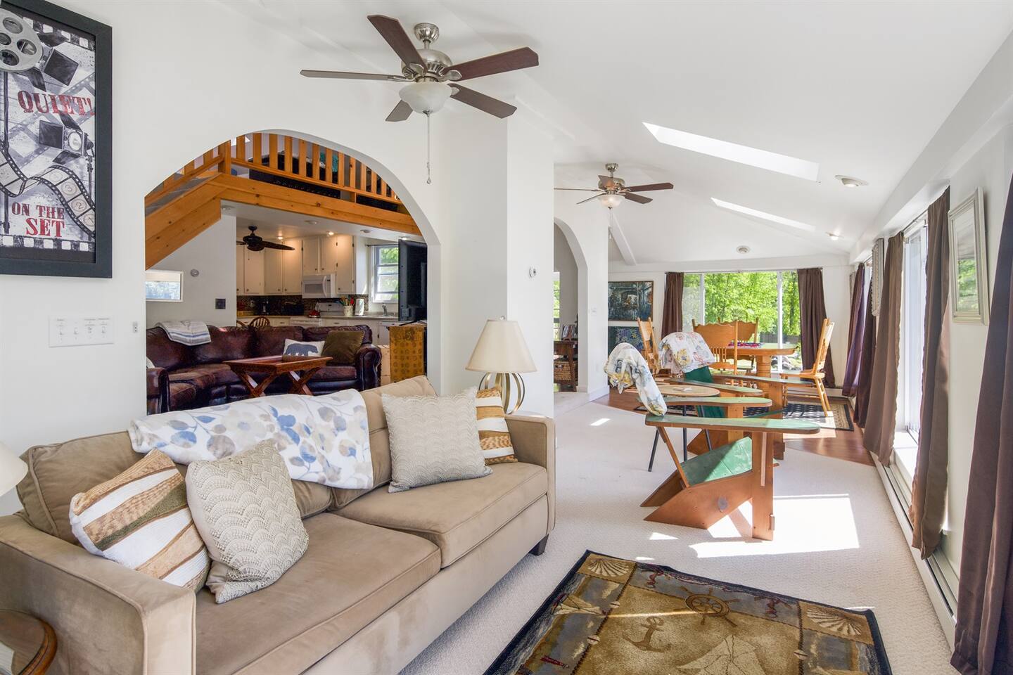 BATHROOM : 1 full 3 piece bath with washer and dryer BEDROOMS : Two cozy bedrooms to choose from, as well as a 16” deep Queen sized mattress in the loft and a fold out sofa in the Sun Room. DISCLOSURES : * Please Read Our Ad Completely * Please Read the House Rules Prior to Reserving Cottage. * ALL Guests Must Be 18 Years or Older! * This Cottage is NOT suitable for children! * Absolutely No Pets! * Smoking Not Permitted in the Cottage! * Absolutely 🚫 NO cooking of Seafood Inside of this Cottage! Do you have an EXTRA LARGE FAMILY or Small Group? We have also offer a gorgeous 100 + year old cabin, with a historic story available on the same lake only less than a mile away from this special cottage! There are also other Airbnbs that we host next door. Reserve multiple and share Long Pond and Amenities! Our home generator ensures you’ll never be off the grid in Maine! THE EAT- IN KITCHEN - - There is a large open / eat-in kitchen with a full size refrigerator with an ice maker. - A glass top electric stove with an overhead microwave with vents that channel cooking smells and steam to the outside so that the cottage will smell clean for the next guests. - There is a dishwasher next to the kitchen sink! There are also ample pots, pans and dishes as well as numerous "kitchen gadgets" you may need during your stay! We also have small appliances, a Rice Cooker, Coffee Bean Grinder, Panini Grill, Crockpot, Blender and more! [ PLEASE — Absolutely NO COOKING OF SEAFOOD in this cottage! ] 😖 - 🚫 🦀 🚫 🦞 🚫 🐠 🚫 🍤 🚫 🦐 🚫 🦑 🚫 🐢 🚫🐬 🚫🐳 🚫🦈 🚫 🐚 - 😩 DINING ARRANGEMENTS - This cottage can seat a total of 10 comfortably between the dining and the kitchen tables. - PLEASE - We must ask that you EAT ONLY in these 2 designated indoor areas only! Please no food in any other rooms, we are conscious of keeping our cottage bug free and ultra clean! * Cooking Your Seafood on the Grill - Imagine grilling your fresh catch 🎣, lobsters 🦞, shrimp 🦐 and steaks 🥩 while admiring a gorgeous sunset from the protection of this covered deck! * Additional cleaning charges for foods that are cooked that cause overwhelming smells will be charged to your card. DINING OUTDOORS - There is a heavy-duty picnic bench with an umbrella for your use under our shady trees overlooking the lake, please do not leave the picnic bench with food, you will attract unwanted animals! COZY LIVING AREAS - THE LIVING ROOM - Adjoining the kitchen is the living room facing the lake with a large supple leather sofa sectional that can comfortably seat up to 6 persons. ROKU TV is available with your own streaming logins. We are located in RURAL BUCKSPORT and —- we DO NOT have HIGH SPEED WIFI. * If you need to use a laptop computer, please bring at least a 10 foot LAN cord for direct connection and better Internet performance! ( The WiFi is adequate for basic use with phones and tablets! ) ELECTRIC FIREPLACE - * The Smart TV sets atop a faux fireplace, equipped with 4 modes for visual romantic ambiance or if need be, 4 heat modes for those chilly fall nights. OPEN AREA - A.C. COOLING - A wall mounted air conditioning unit is located near the loft stairs, this can be used along with our numerous ceiling fans to cool off the open living room, sitting room, kitchen and dining areas, it is always set on 70 degrees F. Dining Room - From the living room, step down onto the open dining and sitting room facing the lake, you will find a 6 - person dining area as well as a sitting area with a soft microfiber sofa that pulls out to a queen size sleeper sofa. OVERVIEW - THE BEDROOMS - Each bedroom has a high quality Queen sized Tempur-Pedic brand memory foam mattress. There’s a closet for each room for your hanging clothes and other belongings. You’ll also find bath linens provided in each bedroom closet. Both bedrooms have ceiling fans with light kits and wall mounted A.C. Units with remote controls. COZY OPEN LOFT - The open loft can be used as a meditation room, game room and/or extra sleeping accommodations, please let us know in advance so we can set up the Loft for your needs if any. There is a queen bed and numerous bean bag chairs available for seating. * Caution - The loft is a little low on ceiling height ( 5' 4"). LOFT SKYLIGHTS - (6 Total). The skylight windows up in this loft can be cracked open to release hot air quickly from this home.( Please be sure to close windows or leave cracked open by 1 - inch, when not using or if you’re not home.) BATHROOM / LAUNDRY - The generously sized bathroom has an adorable nautical/Spa theme, with a glass enclosed shower / tub combo, a sink, a toilet, a ceiling fan with a light kit and a full sized stacked washer/dryer. BATHROOM — EXIT & ENTRY DOOR — The bathroom has a secure exterior door that provides a side EXIT / ENTRY that leads out to a small deck and a wrap-around enclosed gated area. EXTERIOR BATHROOM DOOR - This door is also a preferred entrance by guests and provides a second emergency exit door for this cottage. It’s quickly accessible from your parking spot, great for bringing in groceries and if you need to come inside and wash off from a day of hiking, kayaking and/or fishing for your convenience. * Also quickly accessible from your bedrooms in the event you need to exit quickly!