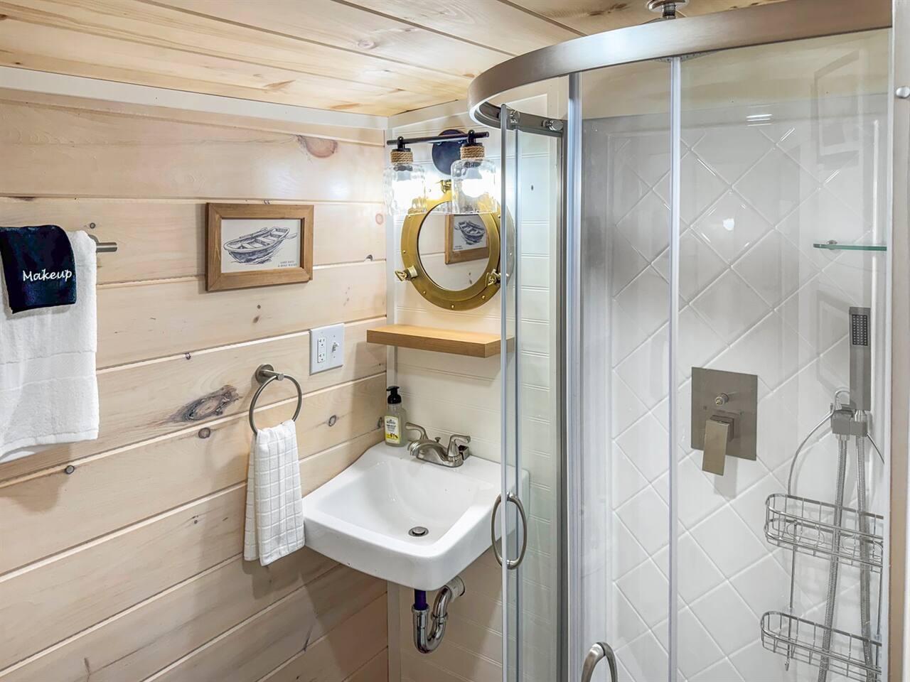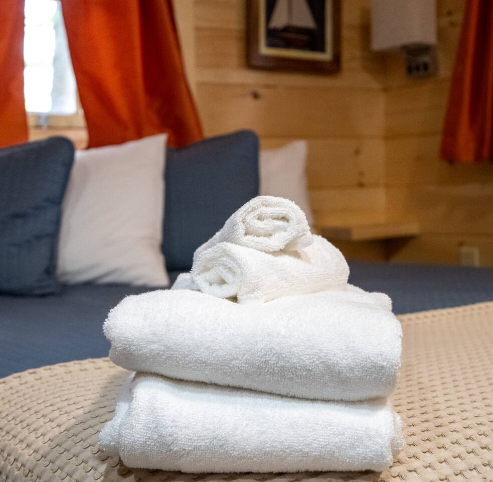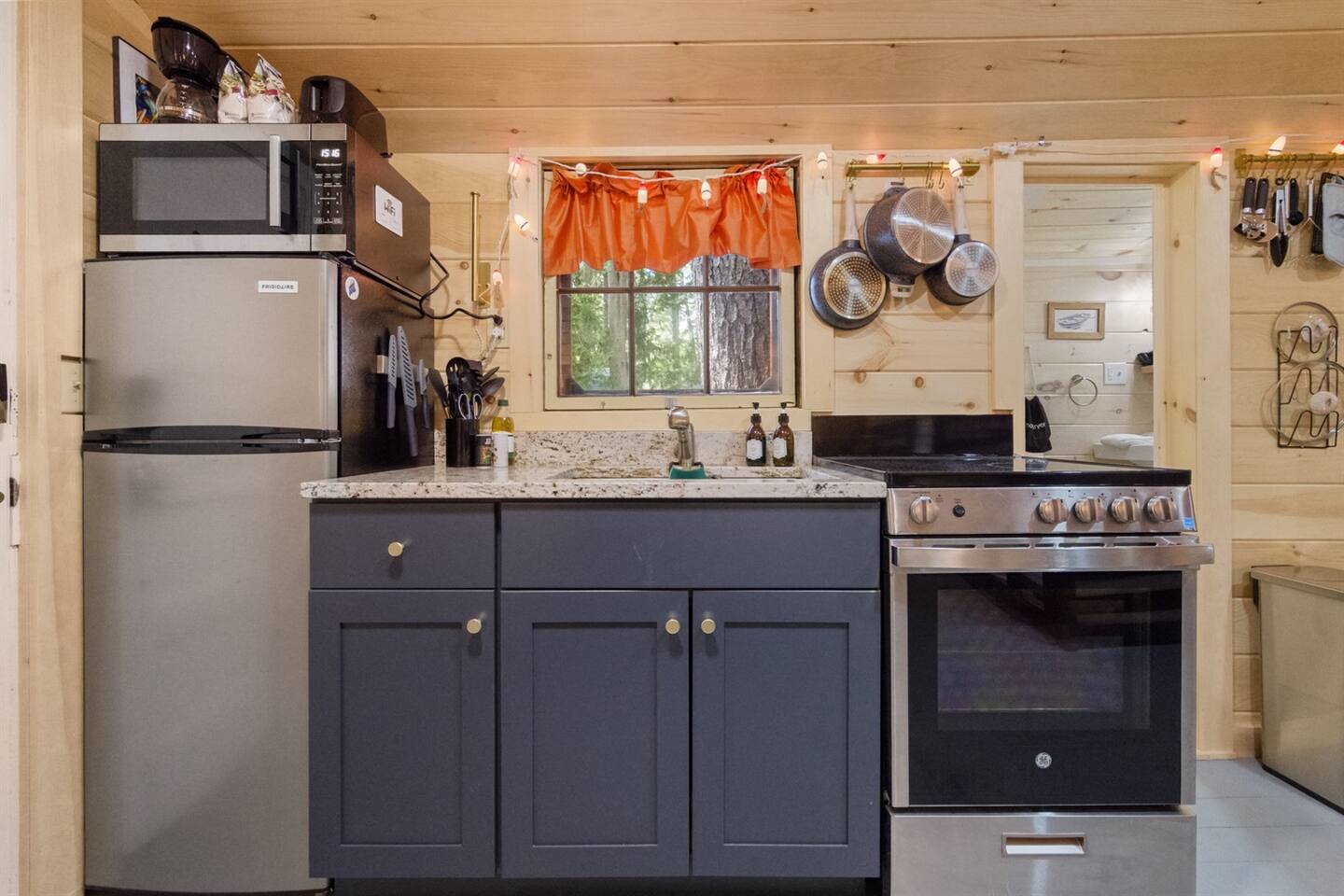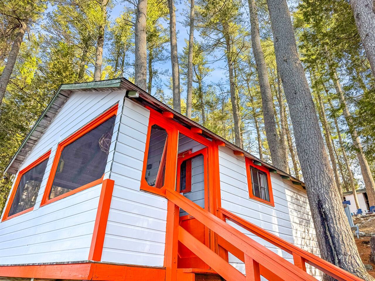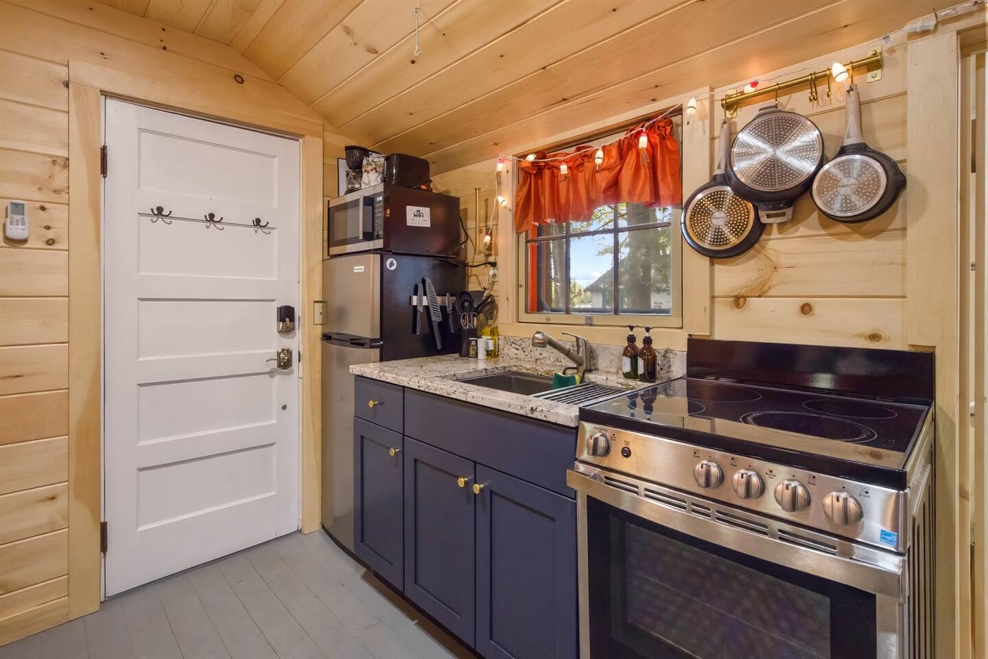 This newly remodeled Maine & Buoy themed tiny cabin is nestled among the tall pine tree shoreline of Toddy Pond. The cabin is located in the waterfront row of cabins, as seen on the map in the listing images. You will love this Buoy themed tiny cabin! Tucked away in a 9-cabin resort on the beautiful gravel shores of Toddy Pond, you’ll have the opportunity to swim and kayak in the crystal-clear water, relax at the shady picnic tables beneath the towering pine trees, view local wildlife, enjoy at-home necessities, and easily access nearby towns! This is truly a special and unforgettable place! Bring your pets, we are very pet-friendly. You can escape the heat and cold in the cabin with the brand new central air conditioning and heating units. This tiny cabin is 14x14ft wide and has one main room, a bathroom, a screened-in porch, and a yard. On one side, there is a queen-size bed and a bunk bed. A kitchenette and a small dining area with two chairs are on the other wall of the cabin. There is an attached and fully remodeled bathroom. The bathroom is small but equipped! Brand-new stand-up shower, toilet, and vanity. Out the front door is a marvelous screened porch with another dining table. Outside is a 6 ft picnic table, a fire pit, a gas grill, and plenty of Adirondack chairs for your group. LINENS: We provide sheets, quilts, pillows, towels, hand towels, face towels, and beach towels CONSUMABLES: We provide salt, pepper, oil, paper towels, toilet paper, dish soap, and hand soap. We ask that people bring their own personal hygiene products to their preferences (shampoo, conditioner, body soap, toothpaste, etc) SLEEPING ACCOMMODATIONS: 1 Queen Bed, 2 twin beds (bunks) KITCHEN: Fully equipped, electric cooktop and oven, mini fridge, microwave, toaster, drip coffee maker, cooking basics, dishware, utensils INDOOR LIVING: Furnished bed areas, a small dining area consisting of a wooden table and two chairs PORCH: Dining table with two chairs OUTDOOR LIVING: Direct lake access via steep path and staircase to the water, private & expansive yard, fire pit for outdoor campfires (bring your own firewood), a gas grill, 6ft picnic table, Adirondack chairs, beautiful towering pine trees, abundant open space, ample sun and shade GENERAL: High-speed WiFi, new heat-pump A/C and heat unit, hot shower, keyless keypad entry, linens, towels PARKING: There is a large, shared gravel driveway. One vehicle is permitted for the Buoy cabin. Parking is not directly next to the cabin. There is a spot to park and unload 50 feet from the cabin. From there, vehicles are moved to the parking lot, which is about 100 feet away. It is a steep hill down to the cabin from the unloading spot ACCESSIBILITY: The resort is not the most accessible place for anyone with mobility challenges. There are stairs to access the building from the path. Parking is on an incline, and there are stairs to the cabin entrance, with a downhill slope from the driveway to the cabin door PETS: We are pet-friendly! We have simple pet rules: clean up after your pet (inside and outside the cabin), keep your pet leashed while outside at all times to avoid any issues with other pets, and do not leave pets alone in the cabins