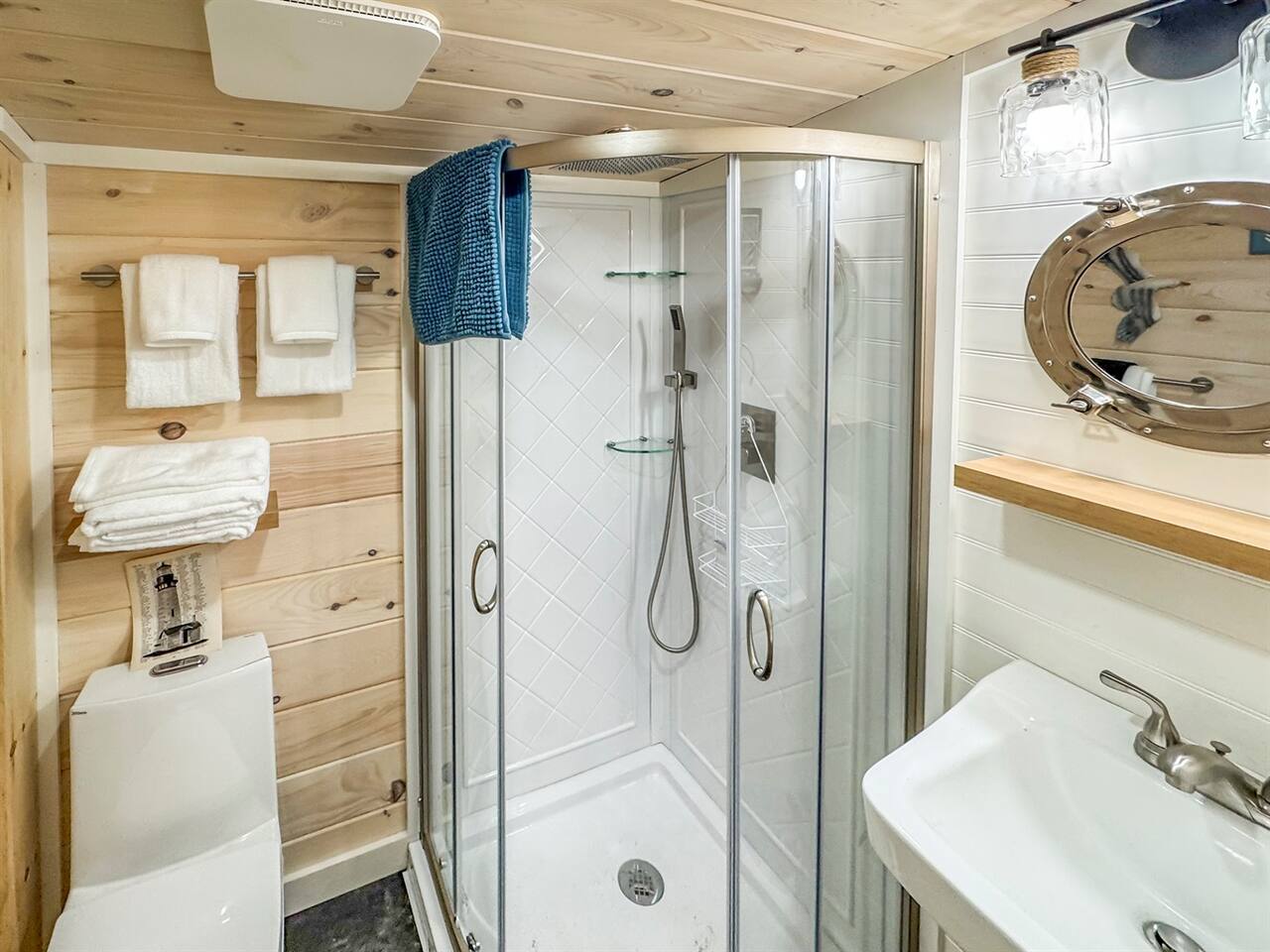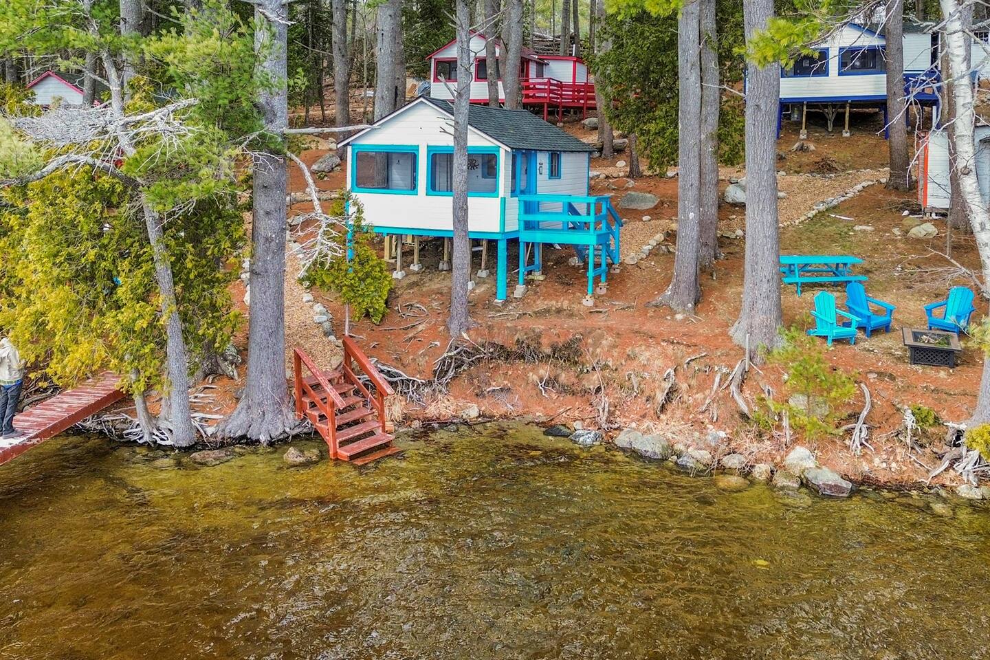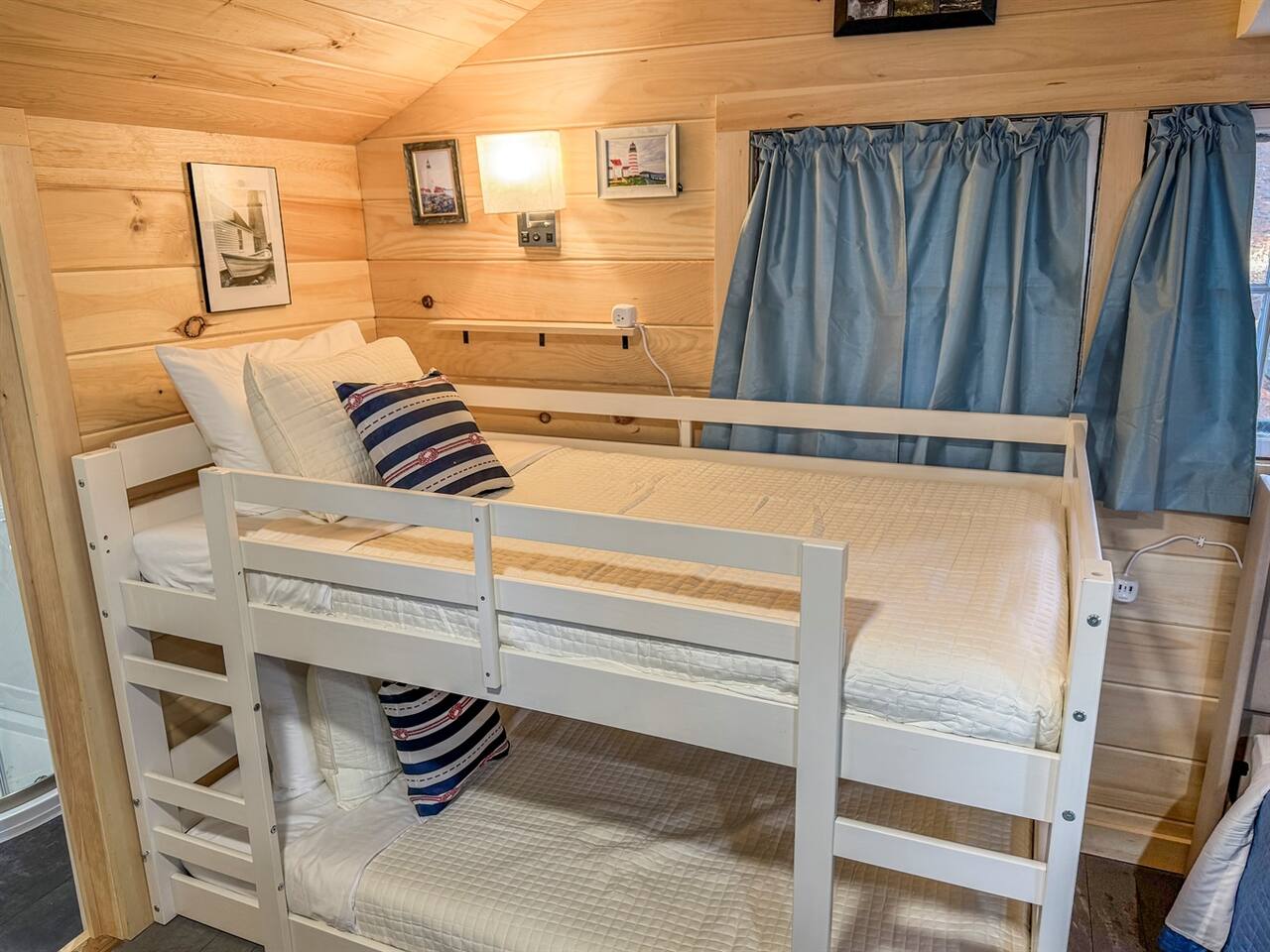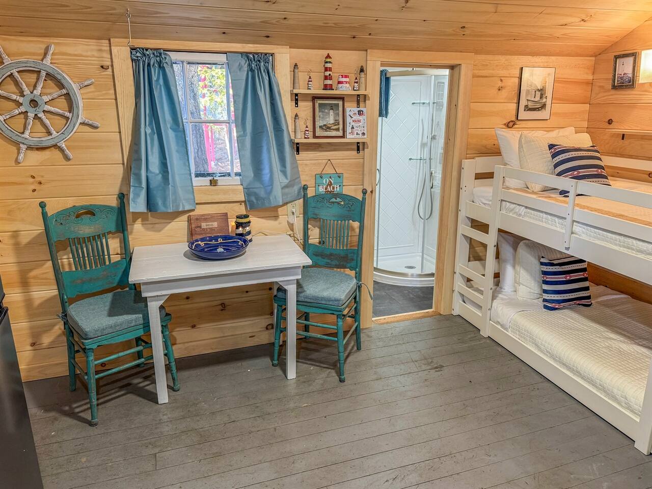 This newly remodeled Maine & Lighthouse themed tiny cabin is nestled among the tall pine tree shoreline of Toddy Pond. The cabin is located in the waterfront row of cabins, as seen on the map in the listing images. You will love this Lighthouse themed tiny cabin! Tucked away in a 9-cabin resort on the beautiful gravel shores of Toddy Pond, you’ll have the opportunity to swim and kayak in the crystal-clear water, relax at the shady picnic tables beneath the towering pine trees, view local wildlife, enjoy at-home necessities, and easily access nearby towns! This is truly a special and unforgettable place! Bring your pets, we are very pet-friendly. You can escape the heat and cold in the cabin with the brand new central air conditioning and heating units. This tiny cabin is 14x14ft wide and has one main room, a bathroom, a screened-in porch, and a yard. On one side, there is a queen-size bed and a bunk bed. A kitchenette and a small dining area with two chairs are on the other wall of the cabin. There is an attached and fully remodeled bathroom. The bathroom is small but equipped! Brand-new stand-up shower, toilet, and vanity. Out the front door is a marvelous screened porch with another dining table. Outside is a 6 ft picnic table, a fire pit, a gas grill, and plenty of Adirondack chairs for your group. LINENS: We provide sheets, quilts, pillows, towels, hand towels, face towels, and beach towels CONSUMABLES: We provide salt, pepper, oil, paper towels, toilet paper, dish soap, and hand soap. We ask that people bring their own personal hygiene products to their preferences (shampoo, conditioner, body soap, toothpaste, etc) SLEEPING ACCOMMODATIONS: 1 Queen Bed, 2 twin beds (bunks) KITCHEN: Fully equipped, electric cooktop and oven, mini fridge, microwave, toaster, drip coffee maker, cooking basics, dishware, utensils INDOOR LIVING: Furnished bed areas, a small dining area consisting of a wooden table and two chairs PORCH: Dining table with two chairs OUTDOOR LIVING: Direct lake access via steep path and staircase to the water, private & expansive yard, fire pit for outdoor campfires (bring your own firewood), a gas grill, 6ft picnic table, Adirondack chairs, beautiful towering pine trees, abundant open space, ample sun and shade GENERAL: High-speed WiFi, new heat-pump A/C and heat unit, hot shower, keyless keypad entry, linens, towels PARKING: There is a large, shared gravel driveway. One vehicle is permitted for the Lighthouse cabin. Parking is not directly next to the cabin. There is a spot to park and unload 50 feet from the cabin. From there, vehicles are moved to the parking lot, which is about 100 feet away. It is a steep hill down to the cabin from the unloading spot ACCESSIBILITY: The resort is not the most accessible place for anyone with mobility challenges. There are stairs to access the building from the path. Parking is on an incline, and there are stairs to the cabin entrance, with a downhill slope from the driveway to the cabin door PETS: We are pet-friendly! We have simple pet rules: clean up after your pet (inside and outside the cabin), keep your pet leashed while outside at all times to avoid any issues with other pets, and do not leave pets alone in the cabins About You I live locally in Orono, Maine, about 45 minutes away. The rest of the resort staff and I often work at the property during the day, but rest assured that your cabin and stay are entirely private. Our housekeeping and maintenance staff live nearby as well, should you need anything at all. Guest Interaction I live locally in Orono, Maine, about 45 minutes away. The rest of the resort staff and I often work at the property during the day, but rest assured that your cabin and stay are entirely private. Our housekeeping and maintenance staff live nearby as well, should you need anything at all. Guest Access You have access to Lighthouse cabin, one of nine unique cabins at the Getogether Stays cabin resort. You have access to the waterfront of Toddy Pond. Kayaks are available for use, and stairs down to the water with a small beach to enjoy. Guests have access to the entire cabin and all shared amenities of the resort. Your cabin includes its own grill, fire pit, picnic table, and Adirondack chairs. Only the kayaks and the waterfront are shared. There are five different places to enjoy the waterfront between the nine cabins. Enjoy a morning paddle on the pond with our complimentary kayaks, gather around your fire pit in the evening, or relax on the dock with a good book. Free parking is available on the premises. Remember to be kind and considerate of your cabin neighbors who are also there to enjoy the serenity of nature. Quiet time is after 10 pm. The Space This newly remodeled Maine & Lighthouse themed tiny cabin is nestled among the tall pine tree shoreline of Toddy Pond. The cabin is located in the waterfront row of cabins, as seen on the map in the listing images. You will love this Lighthouse themed tiny cabin! Tucked away in a 9-cabin resort on the beautiful gravel shores of Toddy Pond, you’ll have the opportunity to swim and kayak in the crystal-clear water, relax at the shady picnic tables beneath the towering pine trees, view local wildlife, enjoy at-home necessities, and easily access nearby towns! This is truly a special and unforgettable place! Bring your pets, we are very pet-friendly. You can escape the heat and cold in the cabin with the brand new central air conditioning and heating units. This tiny cabin is 14x14ft wide and has one main room, a bathroom, a screened-in porch, and a yard. On one side, there is a queen-size bed and a bunk bed. A kitchenette and a small dining area with two chairs are on the other wall of the cabin. There is an attached and fully remodeled bathroom. The bathroom is small but equipped! Brand-new stand-up shower, toilet, and vanity. Out the front door is a marvelous screened porch with another dining table. Outside is a 6 ft picnic table, a fire pit, a gas gril