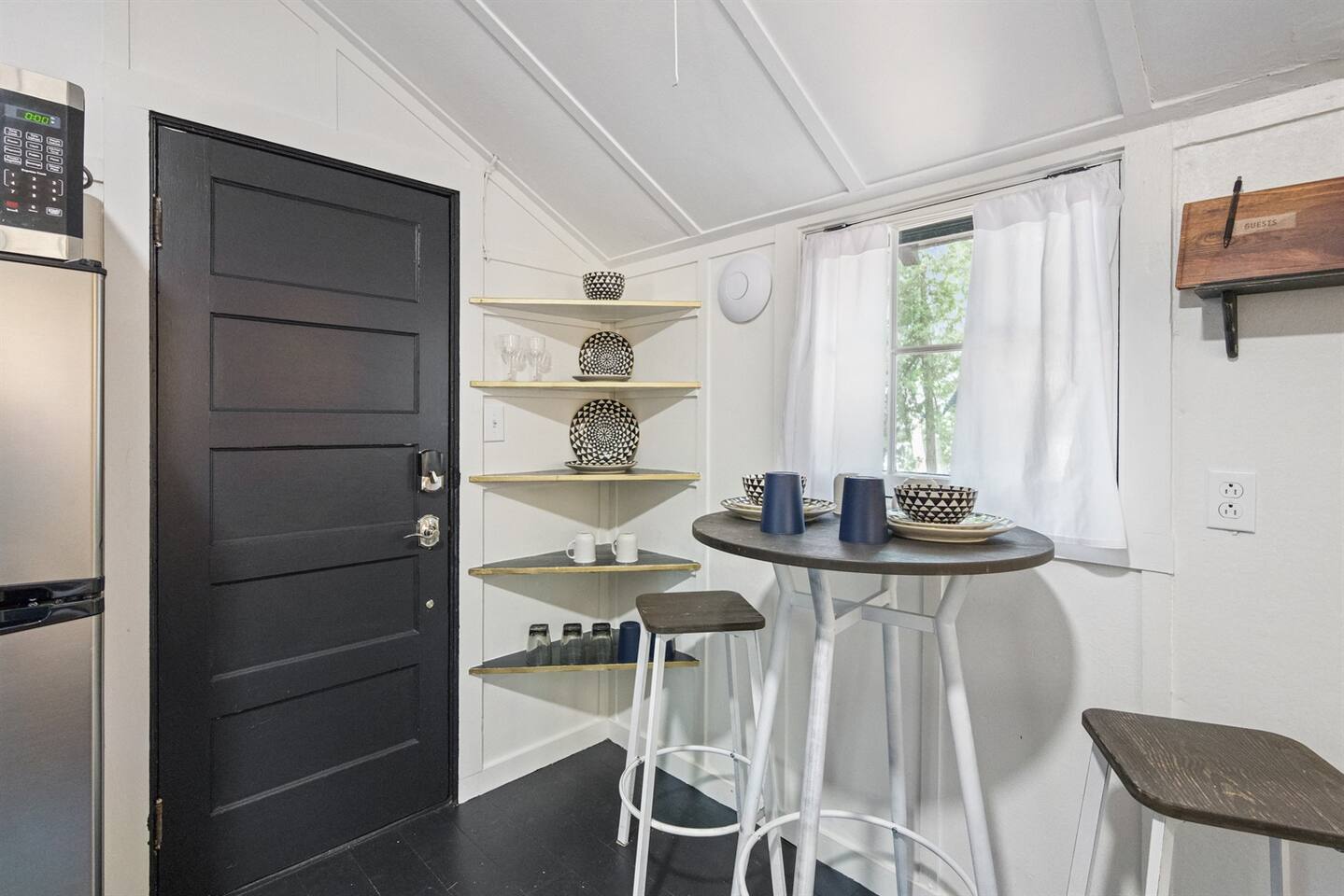 This newly remodeled Maine & Loon themed tiny cabin is nestled among the tall pine tree shoreline of Toddy Pond. The cabin is located in the waterfront row of cabins, as seen on the map in the listing images. You will love this Loon themed tiny cabin! Tucked away in a 9-cabin resort on the beautiful gravel shores of Toddy Pond, you’ll have the opportunity to swim and kayak in the crystal-clear water, relax at the shady picnic tables beneath the towering pine trees, view local wildlife, enjoy at-home necessities, and easily access nearby towns! This is truly a special and unforgettable place! Bring your pets, we are very pet-friendly. You can escape the heat and cold in the cabin with the brand new central air conditioning and heating units. This tiny cabin is 14x14ft wide and has one main room, a bathroom, a screened-in porch, and a yard. On one side, there is a King-size and futon. A kitchenette and a small dining area with two chairs are on the other wall of the cabin. There is an attached and fully remodeled bathroom. The bathroom is small but equipped! Brand-new stand-up shower, toilet, and vanity. Out the front door is a marvelous screened porch with another dining table. Outside is a 6 ft picnic table, a fire pit, a gas grill, and plenty of Adirondack chairs for your group. LINENS: We provide sheets, quilts, pillows, towels, hand towels, face towels, and beach towels CONSUMABLES: We provide salt, pepper, oil, paper towels, toilet paper, dish soap, and hand soap. We ask that people bring their own personal hygiene products to their preferences (shampoo, conditioner, body soap, toothpaste, etc) SLEEPING ACCOMMODATIONS: 1 King Bed and futon. KITCHEN: Fully equipped, electric cooktop, mini fridge, microwave, toaster, drip coffee maker, cooking basics, dishware, utensils INDOOR LIVING: Furnished bed areas, a small dining area consisting of a wooden table and two chairs PORCH: Dining table with two chairs OUTDOOR LIVING: Direct lake access via steep path and staircase to the water, private & expansive yard, fire pit for outdoor campfires (bring your own firewood), a gas grill, 6ft picnic table, Adirondack chairs, beautiful towering pine trees, abundant open space, ample sun and shade GENERAL: High-speed WiFi, new heat-pump A/C and heat unit, hot shower, keyless keypad entry, linens, towels PARKING: There is a large, shared gravel driveway. One vehicle is permitted for the Loon cabin. Parking is not directly next to the cabin. There is a spot to park and unload 50 feet from the cabin. From there, vehicles are moved to the parking lot, which is about 100 feet away. It is a steep hill down to the cabin from the unloading spot ACCESSIBILITY: The resort is not the most accessible place for anyone with mobility challenges. There are stairs to access the building from the path. Parking is on an incline, and there are stairs to the cabin entrance, with a downhill slope from the driveway to the cabin door PETS: We are pet-friendly! We have simple pet rules: clean up after your pet (inside and outside the cabin), keep your pet leashed while outside at all times to avoid any issues with other pets, and do not leave pets alone in the cabins.