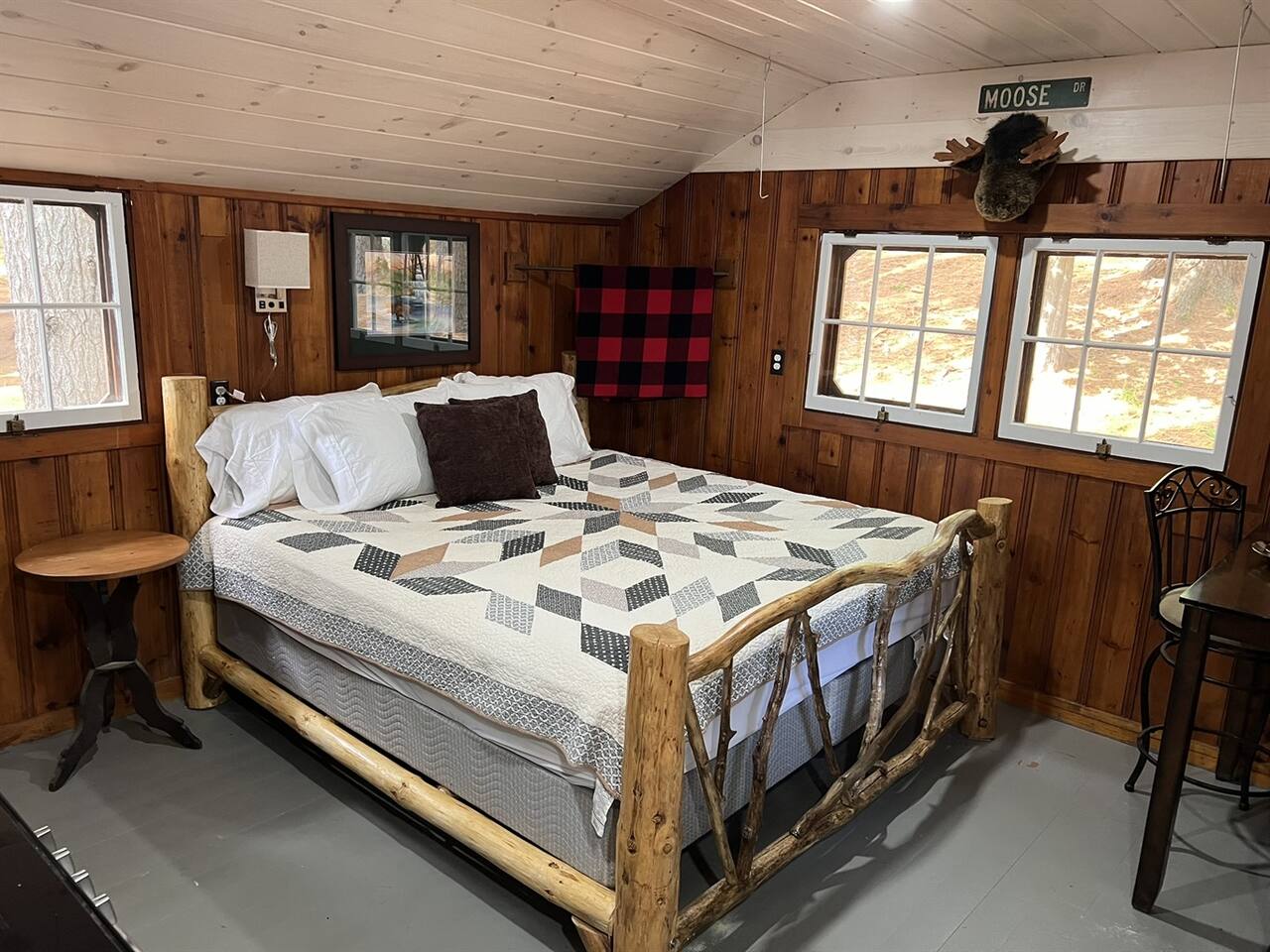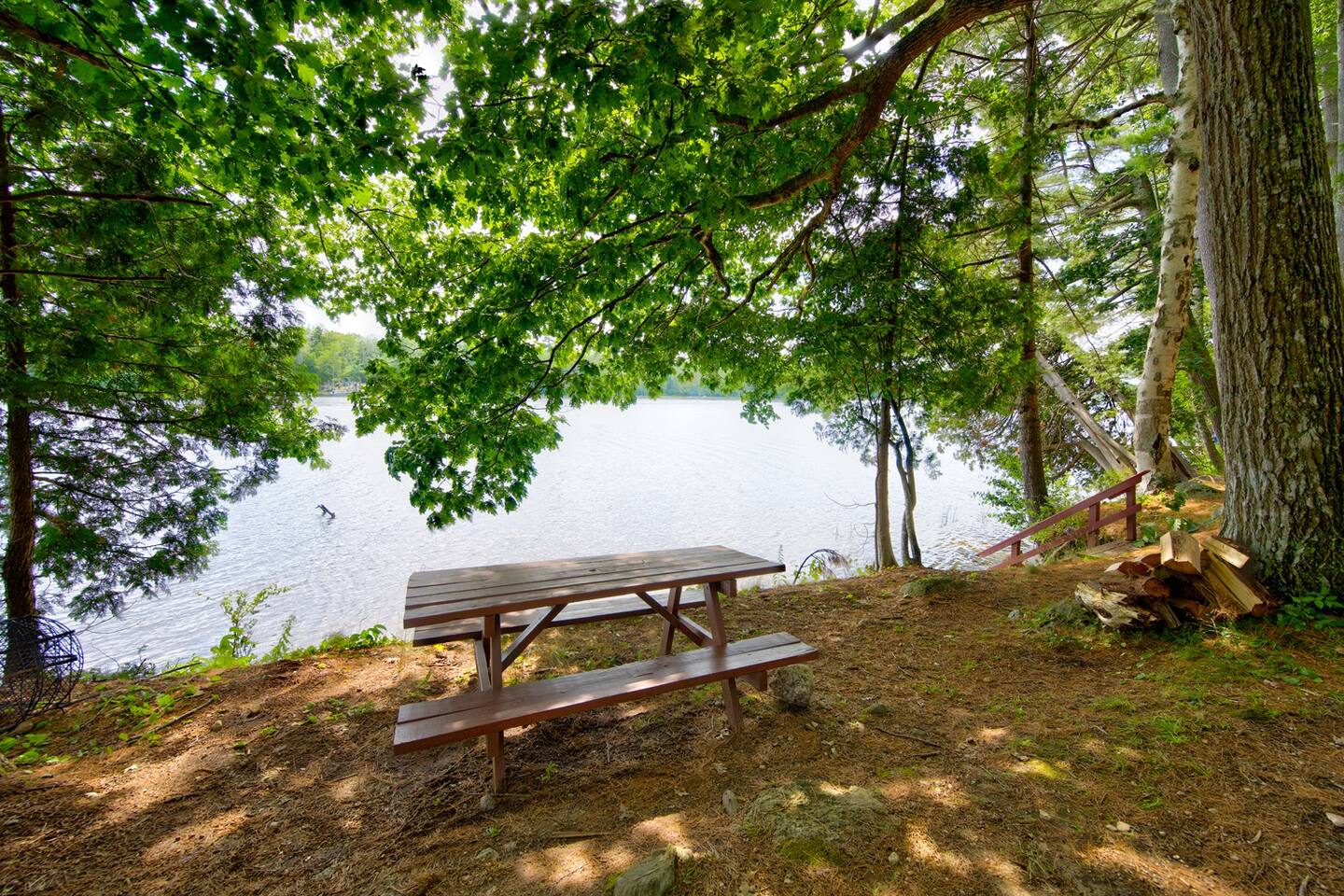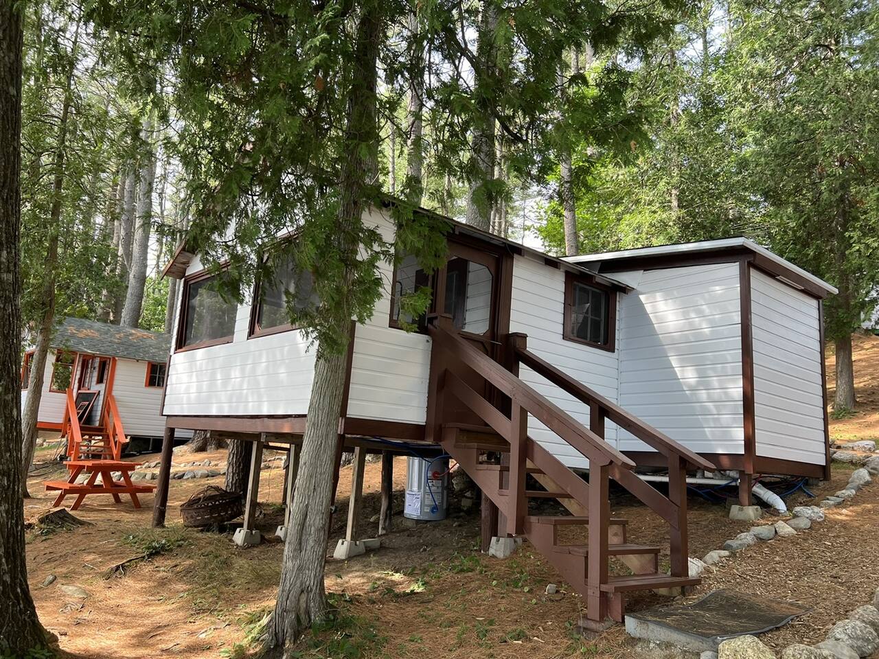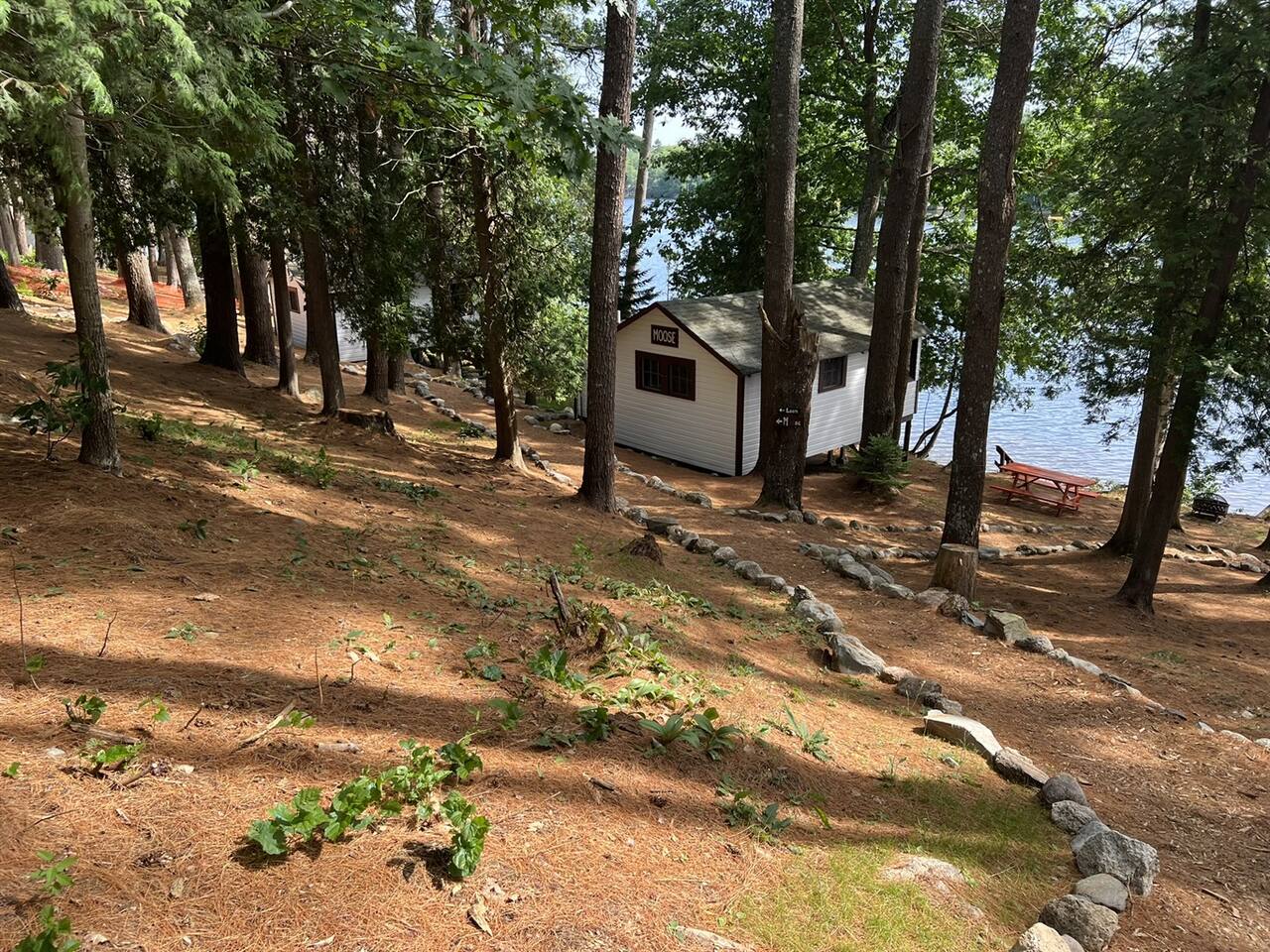 This newly remodeled Maine & Moose themed tiny cabin is nestled among the tall pine tree shoreline of Toddy Pond. The cabin is located in the waterfront row of cabins, as seen on the map in the listing images. You will love this Moose themed tiny cabin! Tucked away in a 9-cabin resort on the beautiful gravel shores of Toddy Pond, you’ll have the opportunity to swim and kayak in the crystal-clear water, relax at the shady picnic tables beneath the towering pine trees, view local wildlife, enjoy at-home necessities, and easily access nearby towns! This is truly a special and unforgettable place! Bring your pets, we are very pet-friendly. You can escape the heat and cold in the cabin with the brand new central air conditioning and heating units. This tiny cabin is 14x14ft wide and has one main room, a bathroom, a screened-in porch, and a yard. On one side, there is a King-size bed. There is a kitchenette and a small dining area with two chairs on the other wall of the cabin. There is an attached and fully remodeled bathroom. The bathroom is small but equipped! Brand-new stand-up shower, toilet, and vanity. Out the front door is a marvelous screened porch with another dining table. Outside is a 6 ft picnic table, a fire pit, a gas grill, and plenty of Adirondack chairs for your group. LINENS: We provide sheets, quilts, pillows, towels, hand towels, face towels, and beach towels CONSUMABLES: We provide salt, pepper, oil, paper towels, toilet paper, dish soap, and hand soap. We ask that people bring their own personal hygiene products to their preferences (shampoo, conditioner, body soap, toothpaste, etc) SLEEPING ACCOMMODATIONS: 1 King Bed and 1 pack and play available KITCHEN: Fully equipped, electric cooktop and oven, mini fridge, microwave, toaster, drip coffee maker, cooking basics, dishware, utensils INDOOR LIVING: Furnished bed areas, a small dining area consisting of a wooden table and two chairs PORCH: Dining table with two chairs OUTDOOR LIVING: Direct lake access via steep path and staircase to the water, private & expansive yard, fire pit for outdoor campfires (bring your own firewood), a gas grill, 6ft picnic table, Adirondack chairs, beautiful towering pine trees, abundant open space, ample sun and shade GENERAL: High-speed WiFi, new heat-pump A/C and heat unit, hot shower, keyless keypad entry, linens, towels PARKING: There is a large, shared gravel driveway. One vehicle is permitted for the Moose cabin. Parking is not directly next to the cabin. There is a spot to park and unload 50 feet from the cabin. From there, vehicles are moved to the parking lot, which is about 100 feet away. It is a steep hill down to the cabin from the unloading spot ACCESSIBILITY: The resort is not the most accessible place for anyone with mobility challenges. There are stairs to access the building from the path. Parking is on an incline, and there are stairs to the cabin entrance, with a downhill slope from the driveway to the cabin door PETS: We are pet-friendly! We have simple pet rules: clean up after your pet (inside and outside the cabin), keep your pet leashed while outside at all times to avoid any issues with other pets, and do not leave pets alone in the cabins.