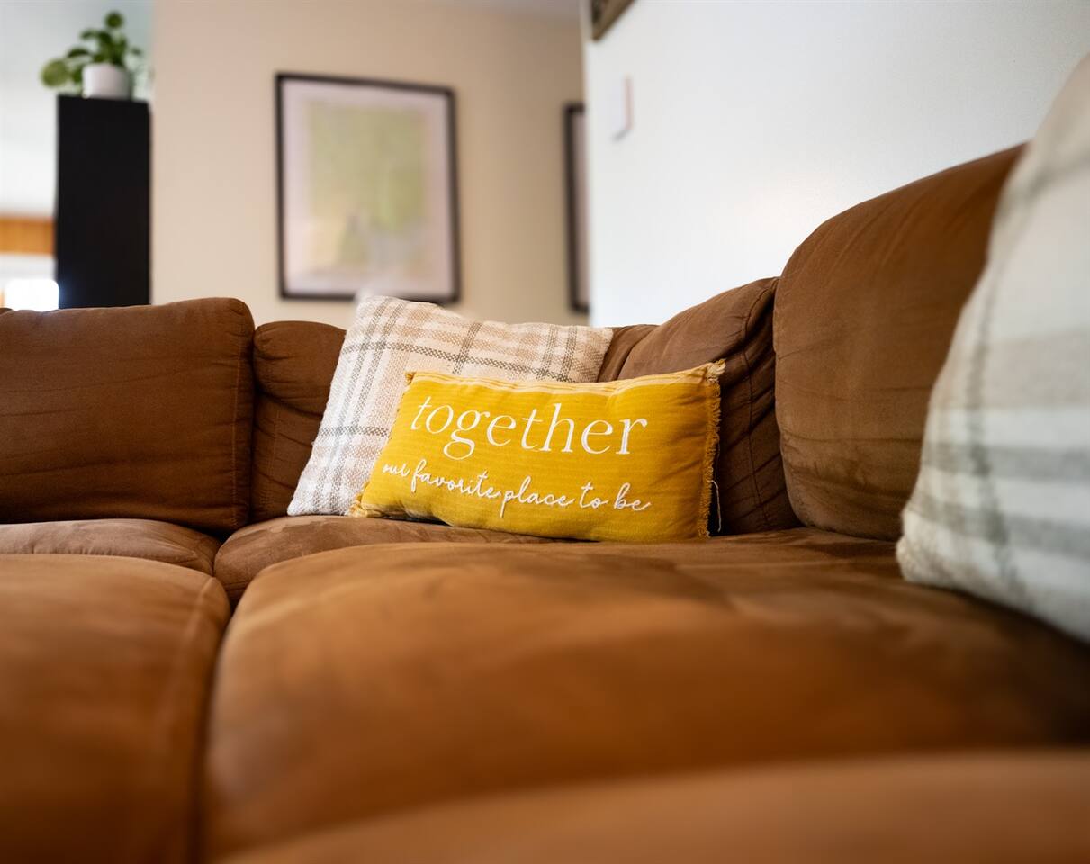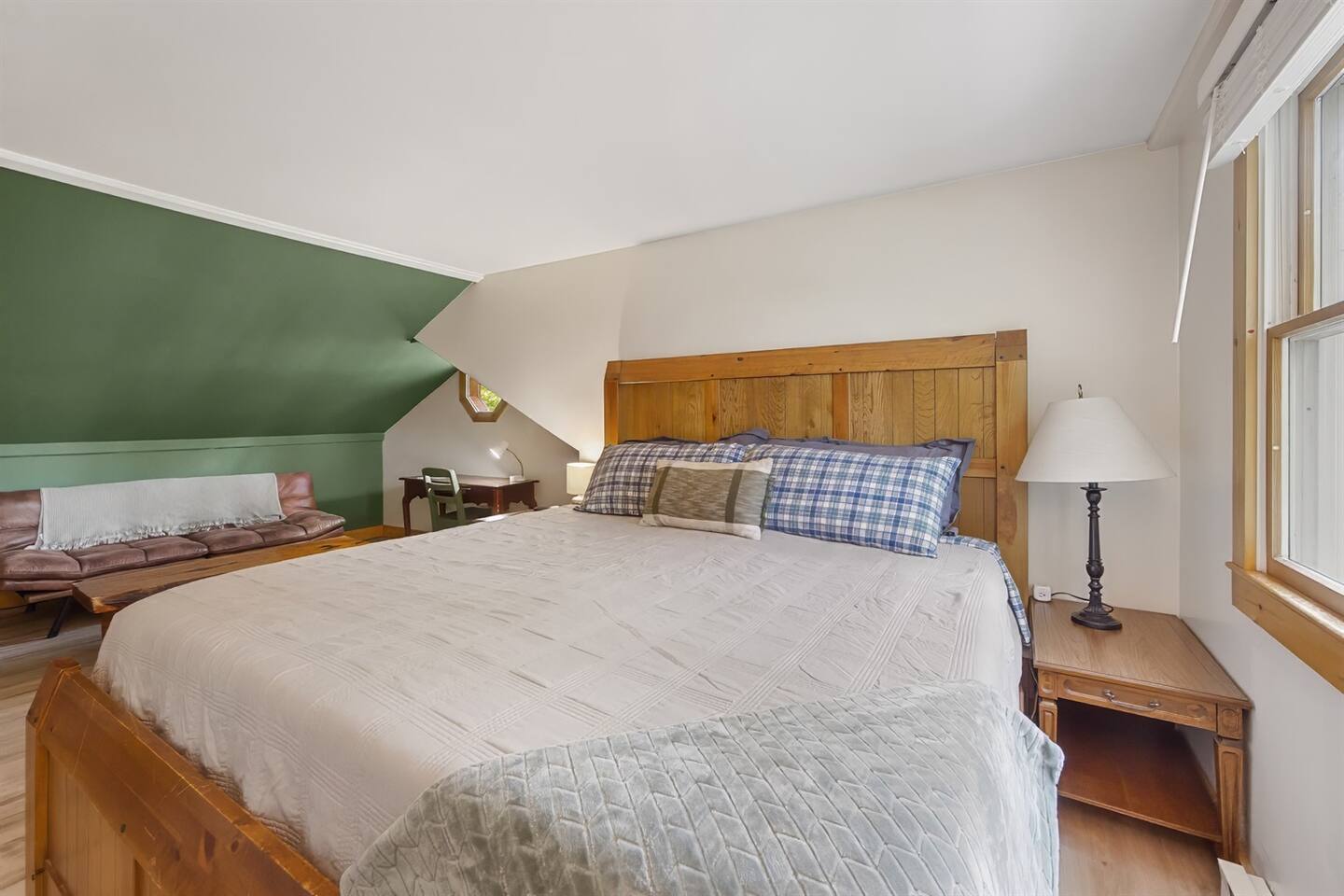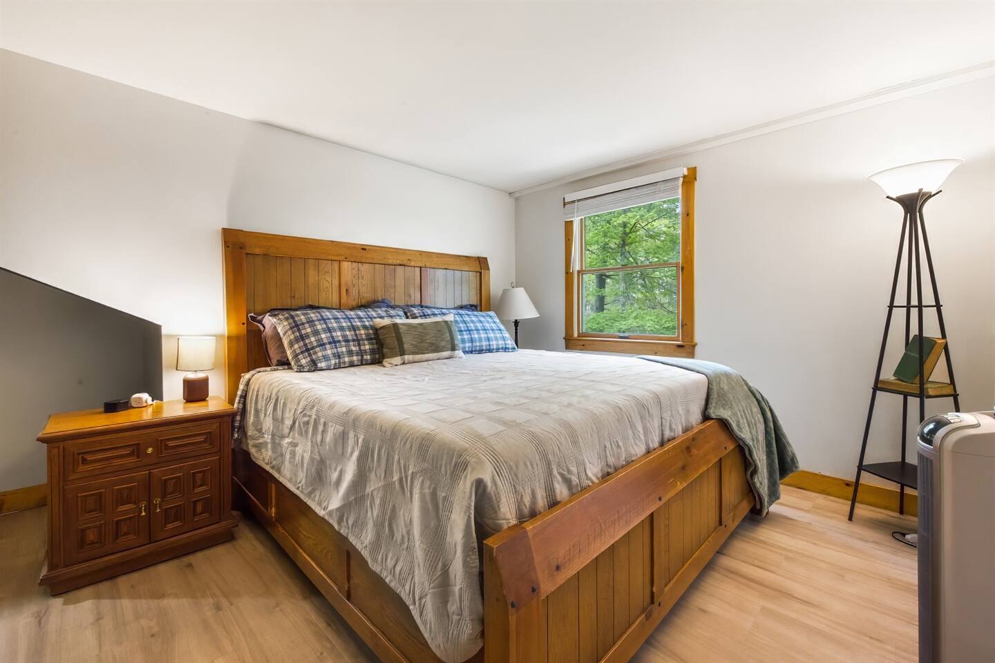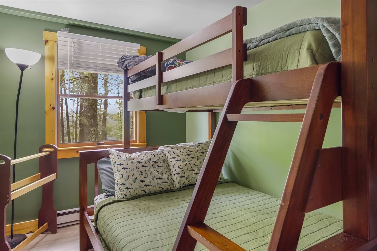 Bedroom 1: Comfortably furnished with a king-sized bed and a spacious closet. This is on the first floor of the house and has easy access to the bathroom. Bedroom 2: Features two full beds and a dresser, ideal for children or guests. On the second floor. Bedroom 3: Boasts a queen bed and a small work desk, perfect for relaxation or catching up on work. Views of the lake through the window over the desk. Bathroom 1: A full bathroom equipped with a shower, vanity, and essential toiletries. A simple set up, it serves the 2nd and 3rd bedrooms. Bathroom 2: Includes a bathtub/shower combo, a mirror, and a vanity. Conveniently located for easy access from the first bedroom and living areas. Living Area: Styled with a comfortable sofa and a flat-screen TV. This inviting space is great for relaxation and social gatherings. Dining Area: Contains a dining table with seating for six, perfect for enjoying meals together. The area is enhanced by natural light and a view of the outdoors. Kitchen: Fully equipped with modern appliances, including a refrigerator, stove, and microwave. Features ample counter space and all you should need to cook for your stay if you don't want to go out.