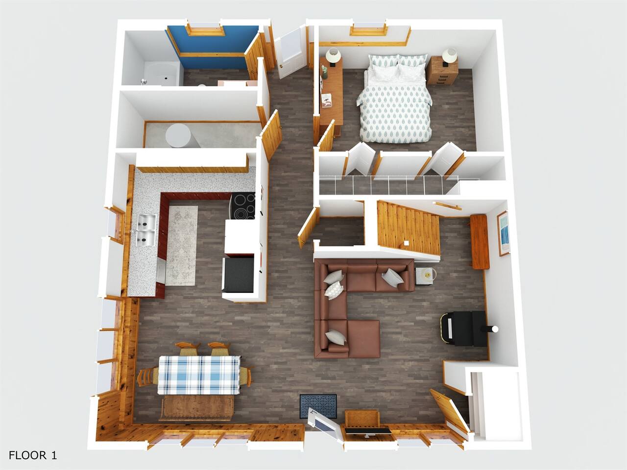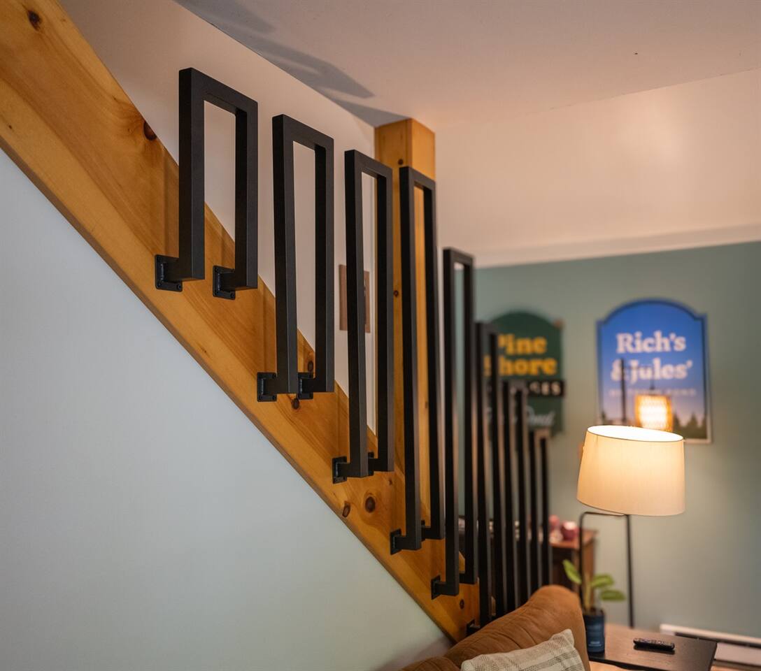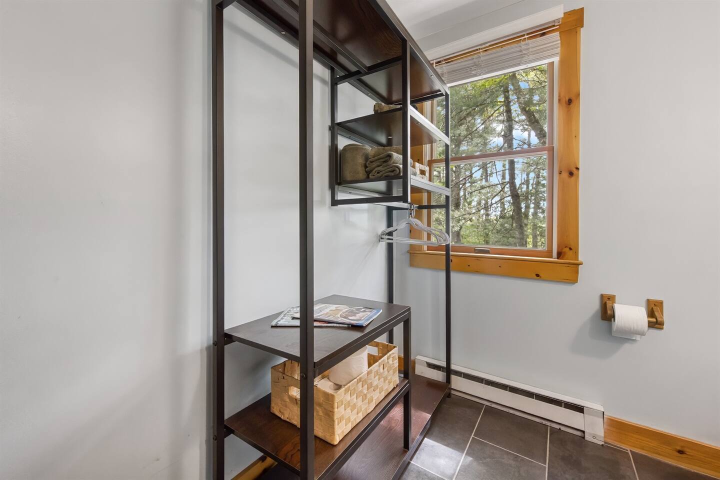 Bedroom 1: Comfortably furnished with a king-sized bed and a spacious closet. This is on the first floor of the house and has easy access to the bathroom. Bedroom 2: Features two full beds and a dresser, ideal for children or guests. On the second floor. Bedroom 3: Boasts a queen bed and a small work desk, perfect for relaxation or catching up on work. Views of the lake through the window over the desk. Bathroom 1: A full bathroom equipped with a shower, vanity, and essential toiletries. A simple set up, it serves the 2nd and 3rd bedrooms. Bathroom 2: Includes a bathtub/shower combo, a mirror, and a vanity. Conveniently located for easy access from the first bedroom and living areas. Living Area: Styled with a comfortable sofa and a flat-screen TV. This inviting space is great for relaxation and social gatherings. Dining Area: Contains a dining table with seating for six, perfect for enjoying meals together. The area is enhanced by natural light and a view of the outdoors. Kitchen: Fully equipped with modern appliances, including a refrigerator, stove, and microwave. Features ample counter space and all you should need to cook for your stay if you don't want to go out.