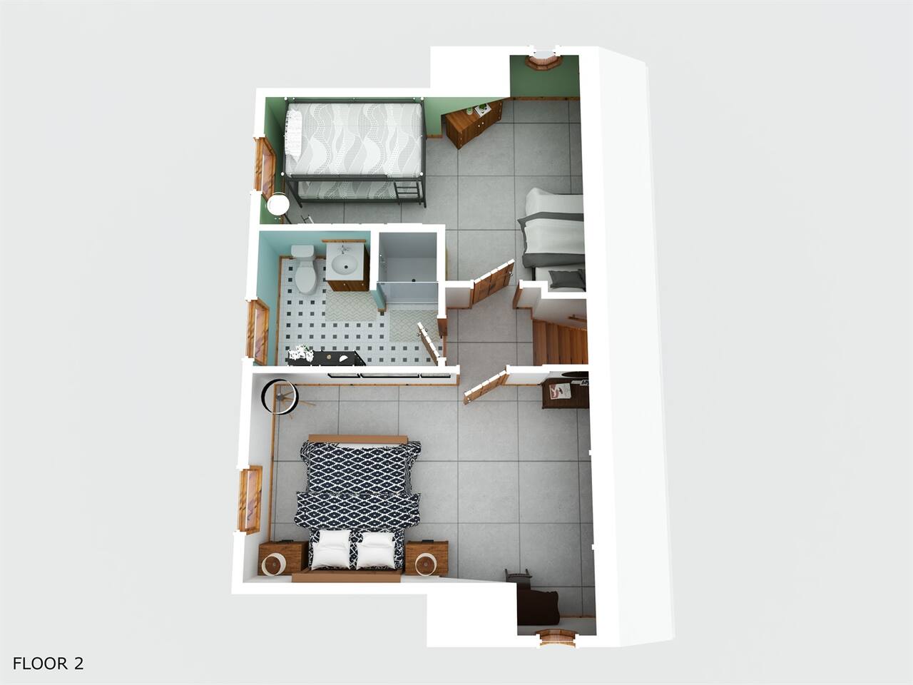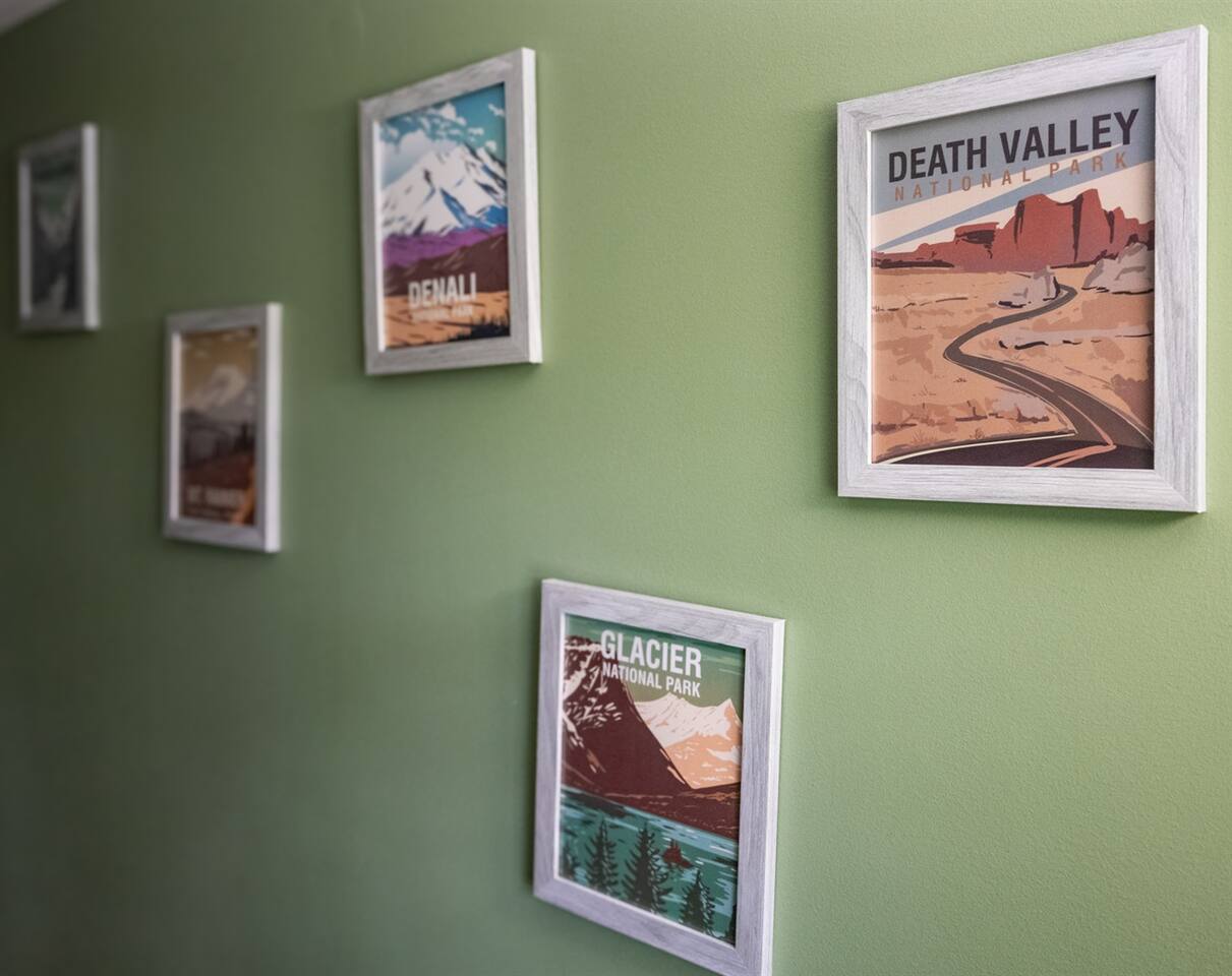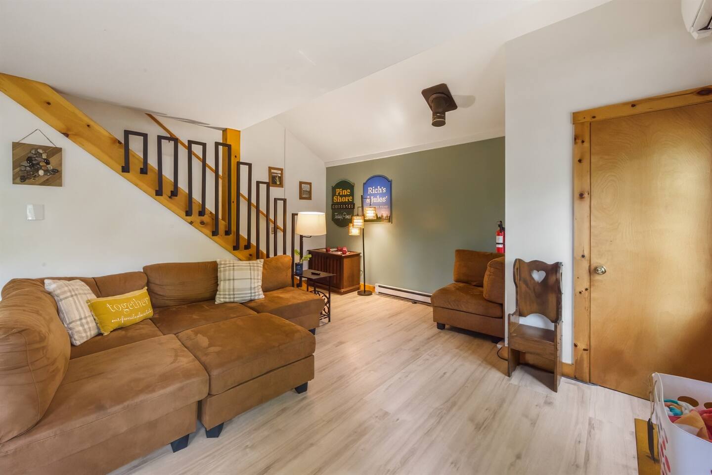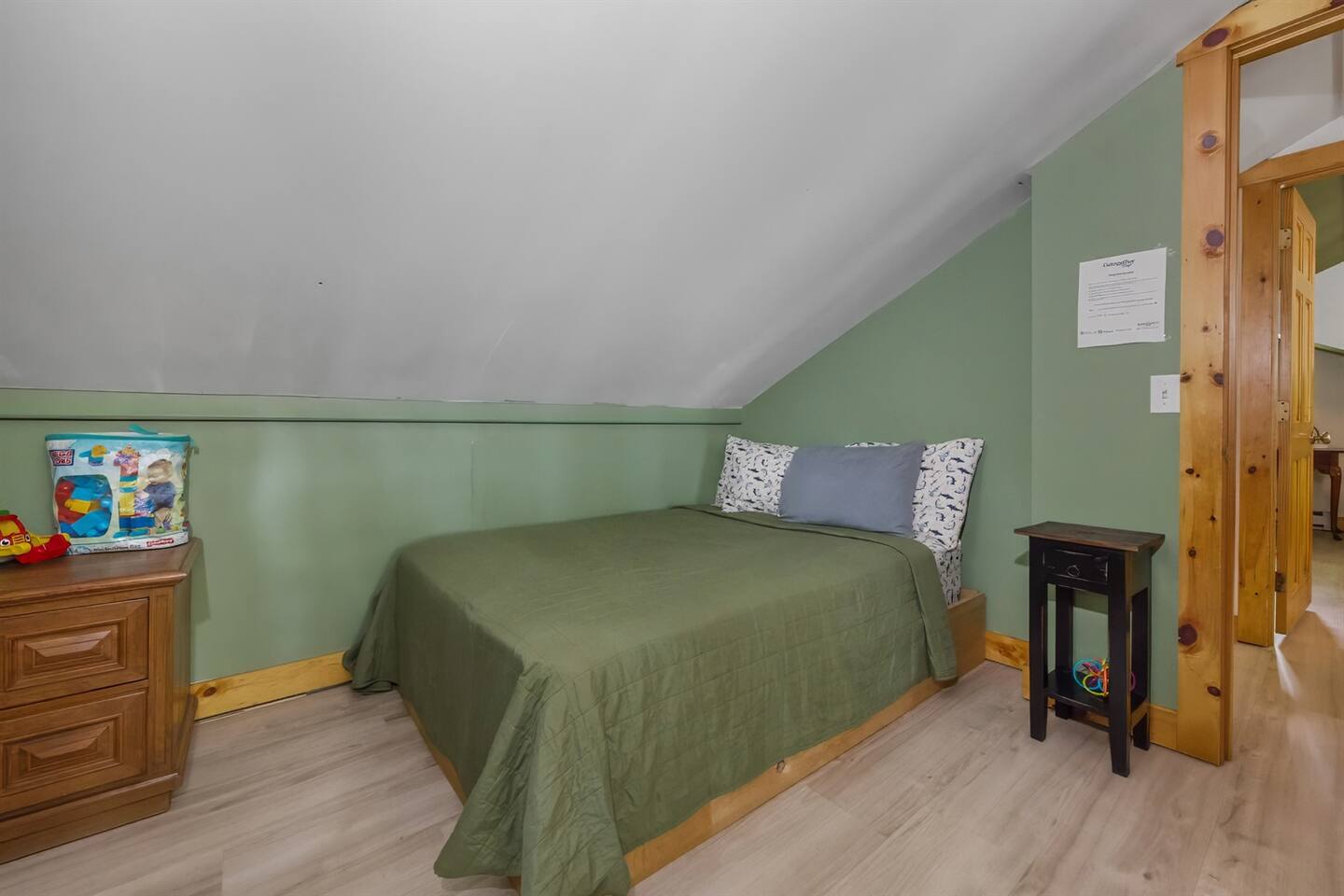 Bedroom 1: Comfortably furnished with a king-sized bed and a spacious closet. This is on the first floor of the house and has easy access to the bathroom. Bedroom 2: Features two full beds and a dresser, ideal for children or guests. On the second floor. Bedroom 3: Boasts a queen bed and a small work desk, perfect for relaxation or catching up on work. Views of the lake through the window over the desk. Bathroom 1: A full bathroom equipped with a shower, vanity, and essential toiletries. A simple set up, it serves the 2nd and 3rd bedrooms. Bathroom 2: Includes a bathtub/shower combo, a mirror, and a vanity. Conveniently located for easy access from the first bedroom and living areas. Living Area: Styled with a comfortable sofa and a flat-screen TV. This inviting space is great for relaxation and social gatherings. Dining Area: Contains a dining table with seating for six, perfect for enjoying meals together. The area is enhanced by natural light and a view of the outdoors. Kitchen: Fully equipped with modern appliances, including a refrigerator, stove, and microwave. Features ample counter space and all you should need to cook for your stay if you don't want to go out.