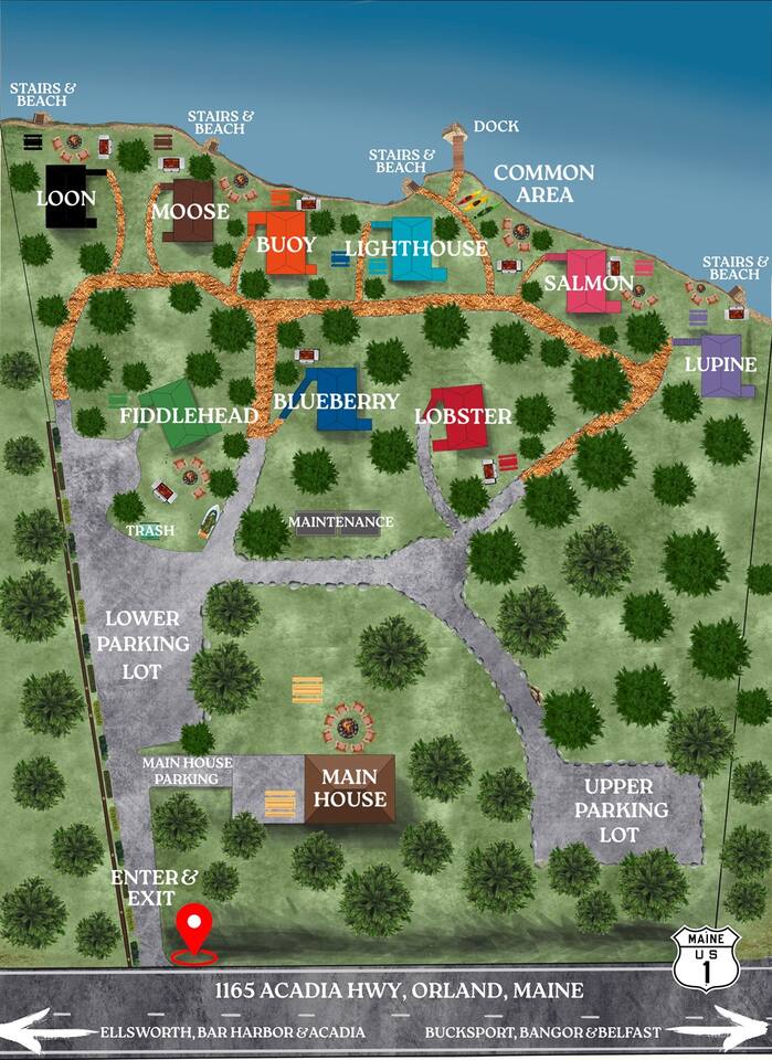 The main house is located in Orland, Maine. Right on the shores of Toddy Pond, you’re also less than 20 minutes from beautiful coastal Maine towns and around 45 minutes to Acadia National Park.